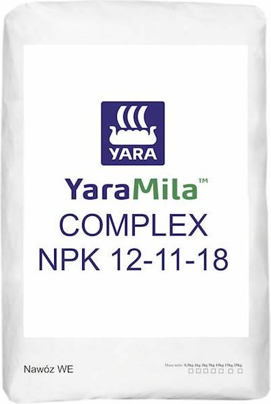 Nawóz Yara Mila Complex do ogrodu skład NPK 12-11-18 + Mikro uniwersalny do wszystkich roślin. Nawóz idealny dla: warzyw polowych, warzyw gruntowych oraz szklarniowych, wieloletnich upraw sadowniczych (pestkowych, jagodowych, ziarnkowych), trawników, zieleńców, kwiatów, krzewów oraz drzew liściastych i iglastych w ogrodzie i szklarni.