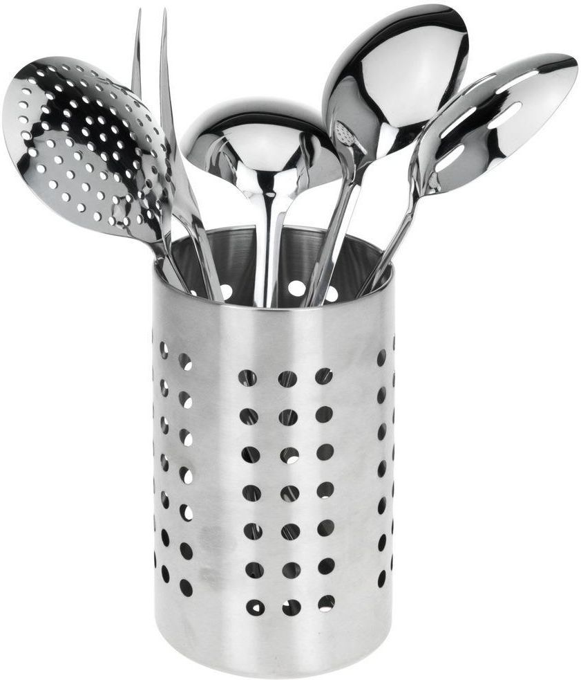 Ten 6-częściowy zestaw przyborów kuchennych marki Excellent Houseware to niezbędny komplet zawierający wszystkie podstawowe akcesoria potrzebne do gotowania. Komplet przyborów kuchennych wykonano ze stali nierdzewnej z matowym wykończeniem, co zapewnia im wytrzymałość i elegancki wygląd. W tym zestawie znajdziesz wszystkie standardowe przybory potrzebne do przygotowania pysznego posiłku. Przesyłka obejmuje jeden pojemnik, jedną łyżkę, jedną łyżkę cedzakową 33 cm, jedną łyżkę cedzakową 32 cm, jedną łyżkę wazową i jedne widełki grillowe. Kolor: srebrny Materiał: stal nierdzewna Wymiary pojemnika: 10,5 x 18 cm (śr. x wys.) Grubość blachy metalowej: 0,14 cm Matowe wykończenie Zawartość dostawy: 1 x uchwyt 1 x widełki grillowe 32 cm 1 x łyżka 33 cm 1 x łyżka cedzakowa 33 cm 1 x łyżka cedzakowa 32 cm 1 x łyżka cedzakowa 28,5 cm