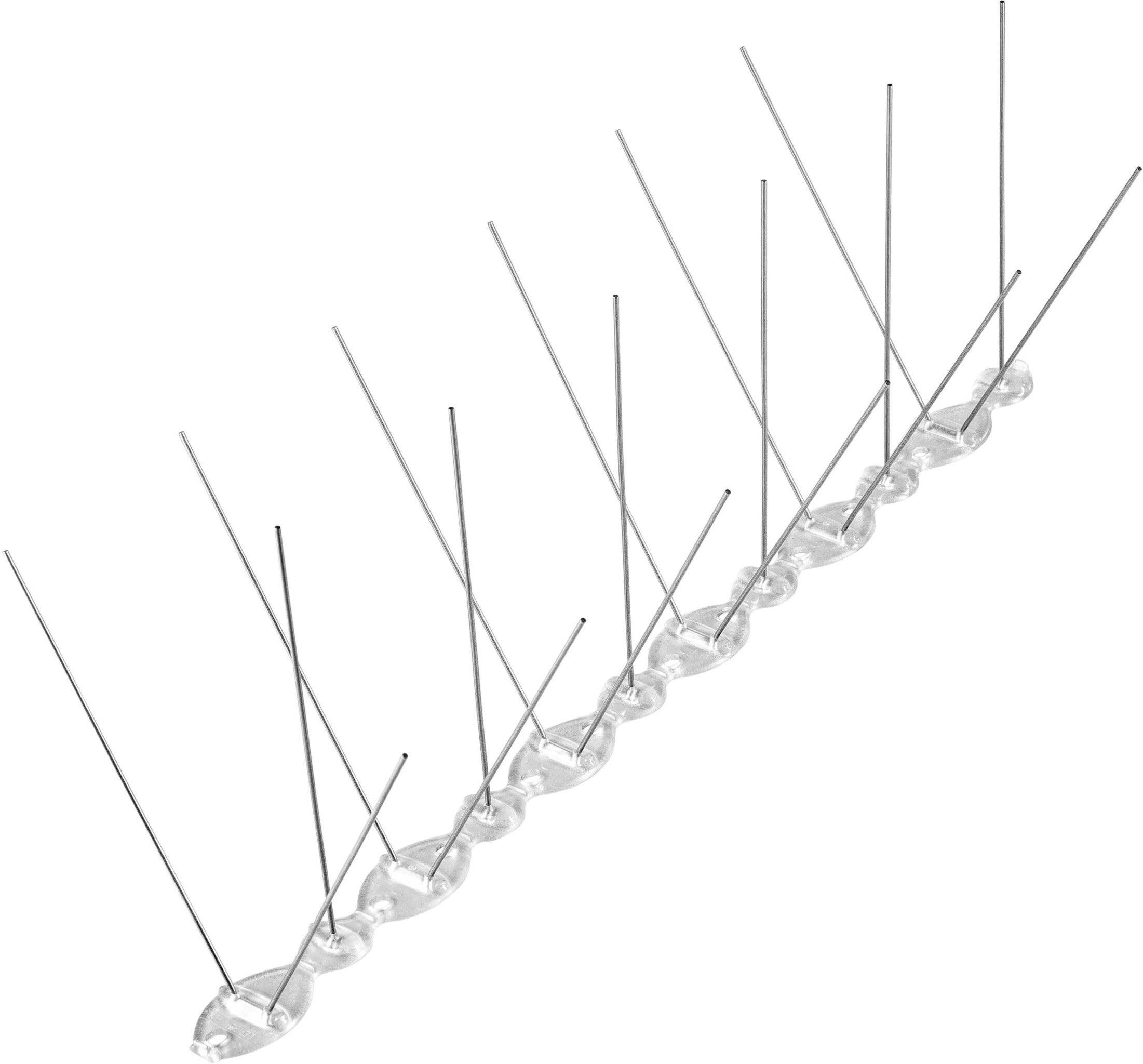 Kolce przeciw ptakom PC stal U2 11 x 31 x 10 cm Kolce przeciw ptakom o szerokości 31 cm wykonane są ze stali nierdzewnej i przymocowane do przezroczystej listwy z poliwęglanu. Występują w formie segmentów składających się z kolców w 3 rzędach o średnicy 1,3 mm i długości 11 cm. Segmenty te …