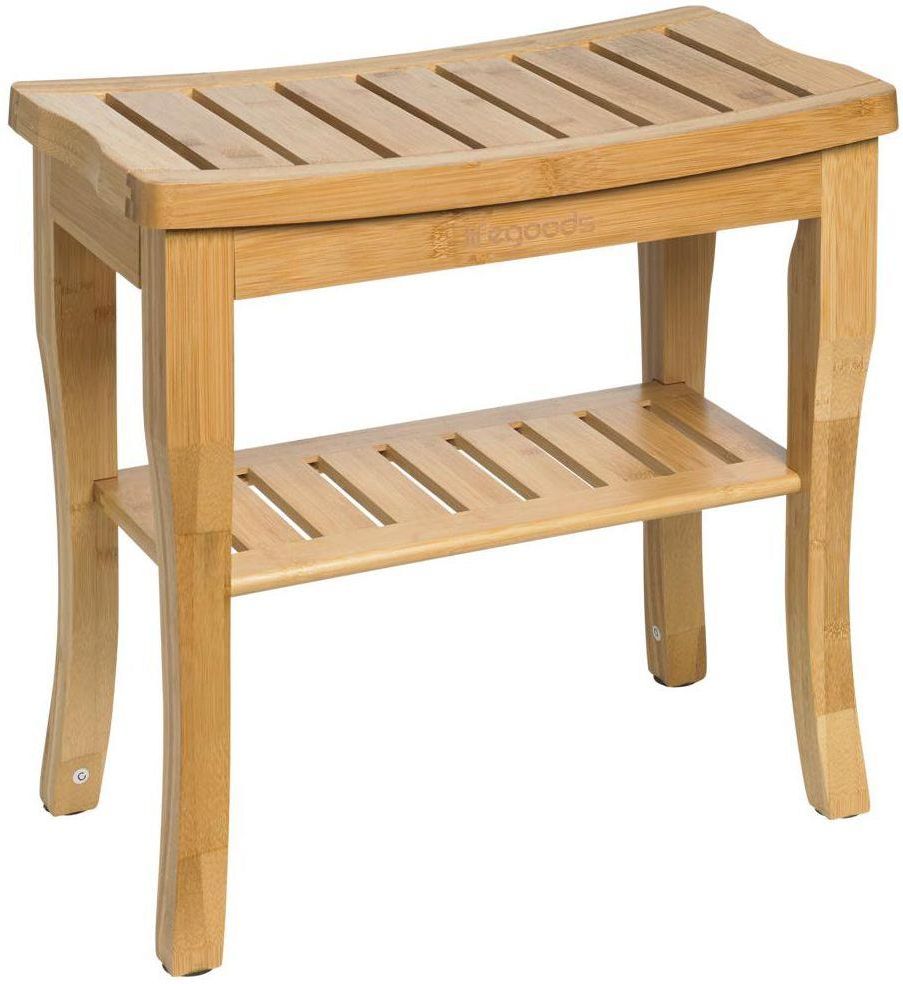 Taboret łazienkowy BAMBUS EVG Kolor: Brązowy jasny Długość (w cm): 25 Wysokość (w cm): 45 Szerokość (w cm): 47 Głębokość (w cm): 25 Stołek łazienkowy z półką na ręczniki lub akcesoria łazienkowe. W całości wykonany z wytrzymałego i odpornego na wilgoć bambusa. Nowoczesny design świetnie sprawdzi …