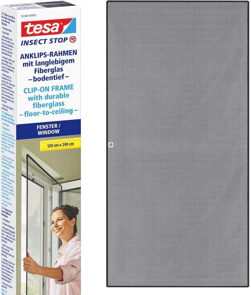 TESA Moskitiera na okno siatka okienna ramkowa na zatrzaski czarna 1,2x2,4m Tesa® Moskitiera do okien Insect Stop z ramką mocowaną na zatrzaski Moskitiera do okien tesa® Insect Stop z ramką mocowaną na zatrzaski jest łatwa w montażu. Dopasowuje się do ram okiennych o różnych rozmiarach. Jest również wytrzymała i półprzezroczysta, co zapewnia dobrą widoczność. Wymiary: 1.20 m x 2.40 m Kolor: antracyt Zawartość opakowania: 1 sztuka Materiał: PVC Dzięki moskitierze tesa® Insect Stop z ramką mocowaną na zatrzaski komary, muchy i osy pozostają na zewnątrz. System zatrzaskowy umożliwia zakładanie i zdejmowanie ramki w razie potrzeby — bez ryzyka jej uszkodzenia. Tak to działa: Zmierz okno, przytnij plastikowe elementy ramki na wymiar i sklej je ze sobą, tworząc prostokąt. W kolejnym kroku zaciśnij w ramce siatkę z włókna szklanego, przytnij nadmiar nożykiem i przyklej klipsy mocujące do ramy okna. Następnie zamocuj w zatrzaskach samodzielnie wykonaną moskitierę. moskitiera z włókna szklanego w plastikowej ramce umieszczana w samoprzylepnych zatrzaskach mocujących można ją odczepić na sezon zimowy regulowana do konkretnego rozmiaru w zestawie siatka Clear View Plus zapewniająca lepszą widoczność i wentylację nadaje się do większości ram okiennych z PVC (wymaga ok. 8 mm przestrzeni w ramie okiennej) Instrukcja montażu Zmierz okno, przytnij plastikowe elementy ramki na wymiar i sklej je ze sobą, tworząc prostokąt. W kolejnym kroku zaciśnij w ramce siatkę z włókna szklanego, przytnij nadmiar nożykiem i przyklej klipsy mocujące do ramy okna. Następnie zamocuj w zatrzaskach samodzielnie wykonaną moskitierę.