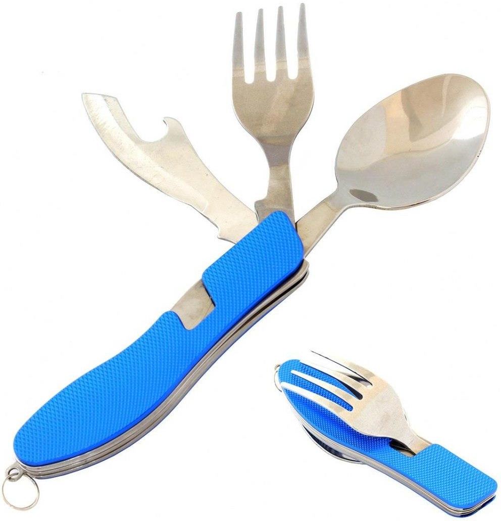 Kieszonkowy niezbędnik wojskowy i turystyczny - nóż z otwieraczem do butelek, widelec oraz łyżka zintegrowana w jednym poręcznym scyzoryku, który zawsze możesz mieć przy sobie! To niezawodne i uniwersalne narzędzie bez którego ciężko sobie wyobrazić spożywanie posiłków w warunkach plenerowych! Cechy produktu: Produkt fabrycznie nowy, wysokiej jakości. Obiadowy multi tool zawiera w sobie komplet sztućców szczególnie przydatnych na wyjazdach, wycieczkach, obozach, campingach lub np. w samochodzie. Narzędzie jest bardzo trwałe, dzięki zastosowaniu stali nierdzewnej o wysokiej twardości. Po złożeniu multi tool zajmuje niewiele miejsca, bez trudu zmieści się w plecaku lub kieszeni. Wygodna antypoślizgowa rękojeść wykonana z chropowatego tworzywa Ciekawy pomysł na prezent dla każdego survivalowca! Specyfikacja Materiał: metal + tworzywo sztuczne Długość złożonego: 10,5 cm Długość rozłożonego: 18 cm Kolor: niebieski W zestawie (4): Łyżka Widelec Nóż z otwieraczem Otwieracz do butelek Zapraszamy do złożenia zamówienia!