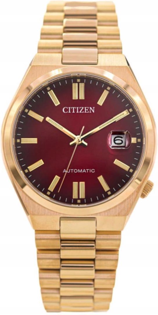 Citizen Nj0153-82X Zegarki to nie tylko praktyczne akcesoria do mierzenia czasu, ale również istotne elementy stylizacji, które mogą podkreślić indywidualny charakter użytkownika. W tym opisie przedstawimy kluczowe aspekty Citizen Nj0153-82X, które czynią go wyjątkowym wyborem wśród męskich czasomierzy. Skupimy się na jego typie i mechanizmie, materiałach użytych do produkcji, wodoszczelności oraz funkcjach dodatkowych, jak również na stylu i designie. Typ zegarka i mechanizm Citizen Nj0153-82X to analogowy zegarek męski, który wyróżnia się precyzyjnym mechanizmem automatycznym. Mechanizm ten, pochodzący z Japonii (cal. 8210), czerpie energię z ruchu ręki, co oznacza, że nie wymaga wymiany baterii. Dodatkowo posiada 21 kamieni łożyskujących oraz możliwość ręcznego dokręcania. Przeszklony dekiel umożliwia podziwianie pracy tego zaawansowanego mechanizmu. Materiały koperty i szkło Koperta zegarka wykonana jest z wysokiej jakości stali nierdzewnej, co zapewnia jej trwałość oraz odporność na korozję. Tarcza chroniona jest przez szafirowe szkiełko, które jest niezwykle odporne na zarysowania, gwarantując długotrwałą przejrzystość i ochronę. Bransoleta i wymiary Zegarek wyposażony jest w bransoletę wykonaną ze stali szlachetnej, która również charakteryzuje się wysoką odpornością na korozję. Bransoleta posiada wygodne zapięcie motylkowe, które ułatwia zakładanie i zdejmowanie zegarka. Wymiary zegarka to: szerokość koperty: 40 mm, wysokość koperty: 45 mm, szerokość paska: 22 mm, co sprawia, że model ten idealnie dopasowuje się do męskiego nadgarstka. Wodoszczelność i funkcje dodatkowe Citizen Nj0153-82X posiada klasę wodoszczelności 50m, co oznacza, że jest odporny na deszcz i przypadkowe zachlapania, dzięki czemu nadaje się do codziennego użytkowania. Dodatkowe funkcje obejmują: datownik wskazujący dzień miesiąca, wskazówki i indeksy pokryte fosforyzującą powłoką Neobrite, zakręcany dekielek zwiększający trwałość i szczelność zegarka, wygodne zapięcie motylkowe bransolety. bez niklu. Styl i design Citizen Nj0153-82X to klasyczny zegarek o eleganckim designie. Złota koperta oraz bransoleta harmonizują z czerwoną tarczą, tworząc wyrazisty kontrast. Wskazówki w kolorze złotym z dodatkiem beżu dodają subtelnego uroku. Błyszczące wykończenie koperty i bransolety sprawia, że zegarek pięknie mieni się pod wpływem światła. Podsumowanie Citizen Nj0153-82X to doskonały wybór dla mężczyzn poszukujących eleganckiego i funkcjonalnego zegarka. Jego automatyczny mechanizm eliminuje potrzebę wymiany baterii, a wysoka jakość materiałów użytych do produkcji gwarantuje trwałość i komfort noszenia. Dzięki klasie wodoszczelności na poziomie 50m zegarek sprawdzi się w codziennym użytkowaniu. Elegancki design sprawia, że ten model pasuje zarówno do formalnych strojów, jak i casualowych stylizacji.