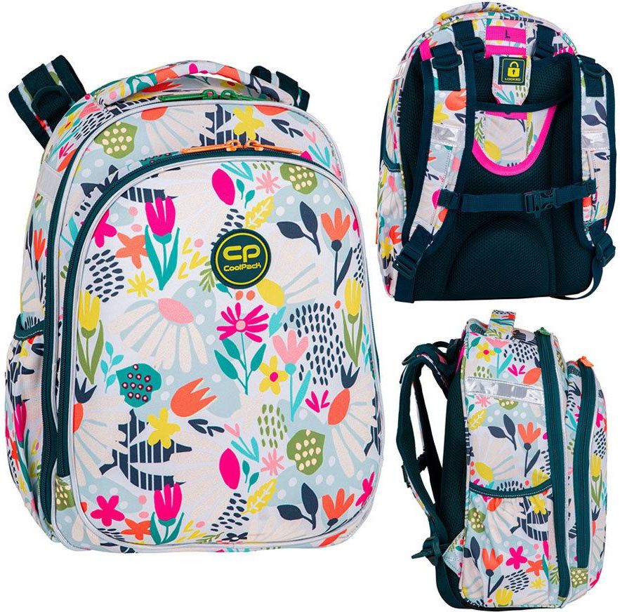 COOLPACK TORNISTER SZKOLNY DLA DZIEWCZYNKI SUNNY PRODUCENT: COOLPACK OPIS PRODUKTU Plecak Coolpack z najnowszej serii Turtle idealnie dopasowuje się do potrzeb każdego ucznia . Kolekcja została stworzona z myślą o najmłodszych użytkownikach. Plecak jest ultralekki i równomiernie rozkłada noszony ciężar. Nieprzemakalny, wysokiej jakości materiał zapewni wygodę użytkowania przez wiele lat. Dodatkowo produkt został wyposażony w regulowane mocowanie szelek, dzięki czemu plecak można dostosować do wzrostu dziecka, przedłużając tym samym jego użytkowość: dwie pojemne przegrody; tylny panel zrobiony z lekkiej i miękkiej pianki zapobiega przemęczaniu się pleców i ramion; szerokie, profilowane szelki plecaka można dowolnie regulować, ponadto odblaski naszyte na szelkach zapewnią Twojemu dziecku bezpieczeństwo; wyściełany, usztywniony uchwyt górny do przenoszenia plecaka w ręce; wewnątrz kieszeń z organizerem; miejsce na klucze - odpinana przywieszka ułatwia korzystanie i wygodne przechowywanie ich; pas piersiowy stabilizujący plecak przy większych obciążeniach; wzmocniony spód plecaka zmniejszy ryzyko szybkiego zniszczenia; dwie boczne kieszonki idealne na bidon; trzystopniowa regulacja (S, M, L) mocowania szelek do wzrostu dziecka; 600D Poliester, który zapewni nieprzemakalność. COOLPACK to marka tworząca m.in. plecaki, torby oraz walizki, których głównym odbiorcą są młode i aktywne osoby. Najchętniej wybierane są przez dzieci i nastolatków, ponieważ są one cenione ze względu na trwałość przez rodziców. Logo CP na plecaku szkolnym to gwarancja najwyższej jakości i funkcjonalności. Charakterystyczną cechą produktów jest mnogość wzorów, kolorów oraz modeli. Różnorodność niezwykłych barw i deseni, o których nie śniło się nawet filozofom. Jeżeli wolisz stonowane barwy to dostępne są plecaki w ciemniejszych odcieniach, jednolite lub z subtelnym motywem. Natomiast jeśli lubisz wyróżniać się z tłumu żywymi kolorami, to w ofercie dostępne są dynamiczne wielokolorowe plecaki, w kropki, w kratkę, również w jaskrawych barwach.