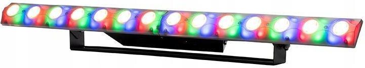 Eliminator Lighting Frost FX BAR W to 1-metrowa liniowa oprawa oświetleniowa do rozrywki, która tworzy kolorowe płukanie i zapierający dech w piersiach efekt pościgu kolorów. Posiada dwa rodzaje kolorowych diod LED w jednym urządzeniu. Posiada czternaście białych diod LED o mocy 3 W z soczewką ACL z przodu oprawy, aby stworzyć intensywne efekty wiązki. Dodatkowo posiada osiemdziesiąt cztery diody LED RGB SMD za matową plastikową soczewką, które tworzą świecące kolorowe wzory. Oba zestawy diod LED działają niezależnie. Każde urządzenie posiada 45 wbudowanych pokazów świetlnych, które można wyzwalać za pomocą wbudowanego 4-przyciskowego wyświetlacza lub uruchamiać w konfiguracji DMX, dźwiękowej lub podstawowej / dodatkowej. Wiele urządzeń może być połączonych ze sobą za pomocą 3-pinowych złączy danych DMX In/Out i blokujących złączy zasilania, dzięki czemu zasilanie może być połączone łańcuchowo z jednego urządzenia do drugiego. Użytkownicy mogą wybierać spośród 64 wbudowanych makr kolorów i 9 elastycznych trybów kanałów DMX. Urządzenie oferuje elektroniczne ściemnianie 0-100% i wymaga maksymalnie 55W na jednostkę. Frost FX Bar W można ustawić poziomo lub pionowo, aby uzyskać unikalne efekty na scenach, w barach, salonach, klubach, zespołach i mobilnych animatorach. Wiele urządzeń można umieścić bezpośrednio obok siebie, aby stworzyć płynne pasmo lub kolorowe światło. Specyfikacja Źródło 1-metrowa liniowa oprawa LED, która goni za kolorami i tworzy angażujące efekty Źródła światła: 14x 3W białe diody LED + 84x 5050 RGB (3-IN-1) diody LED SMD Kąt wiązki światła 17 stopni Sterowanie: 4-przyciskowy wyświetlacz funkcji LED 9 trybów kanałów DMX (3, 8, 14a, 14b, 17, 56, 60, 66 i 69-kanałowe) 4 tryby pracy: DMX, Auto, Dźwięk i Podstawowy/Podstawowy Elektroniczne ściemnianie 0-100 64 wbudowane makra kolorów 45 wbudowanych pokazów Połączenia 3-pinowe złącza DMX In/Out do łączenia danych Blokowane złącza wejścia/wyjścia zasilania do zasilania łańcuchowego Elektryczne Maksymalna moc: 55 W Praca wielonapięciowa: AC 110-240V, 50/60Hz Wymiary Wymiary (dł. x szer. x wys.): 1000 x 71 x 121,4 mm Waga: 3 kg. W zestawie Uchwyt do zawieszania o regulowanym kącie Kabel zasilający