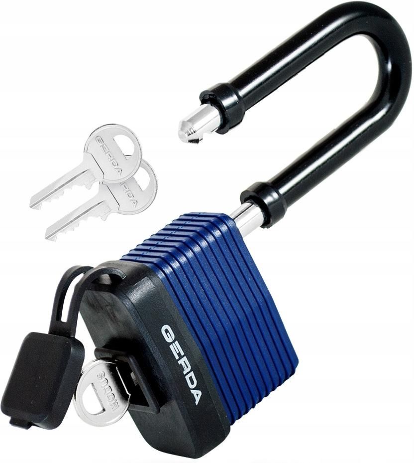Kłódka pałąkowa MODUS AQUA GERDA S55, H=65 w osłonie. 3 klucze. AQM5565 Zestaw zawiera: Kłódka GERDA AQM5565 S55, H=65 odporna na warunki atmosferyczne 3 klucze Opakowanie typu blister Kłódki MODUS są dostępne w sześciu rozmiarach: KSM-35A KSM-45A KSM-55A KSM-75A oraz z długim pałąkiem: KSM-45AH60 KSM-55AH65 Zalecamy okresowe konserwowanie preparatem GERDA. Cechy produktu: Kłódka MODUS AQUA wyposarzona została w obustronną blokadę typu zatrzaskowego. Kłódka pałąkowa MODUS AQUA posiada pałąk ze stali hartowanej. Korpus wykonany z utwardzonej stali w osłonie zwiększającej ochronę przed trudnymi warunkami atmosferycznymi. Osłona zwiększa odporność na kurz i inne zanieczyszczenia.