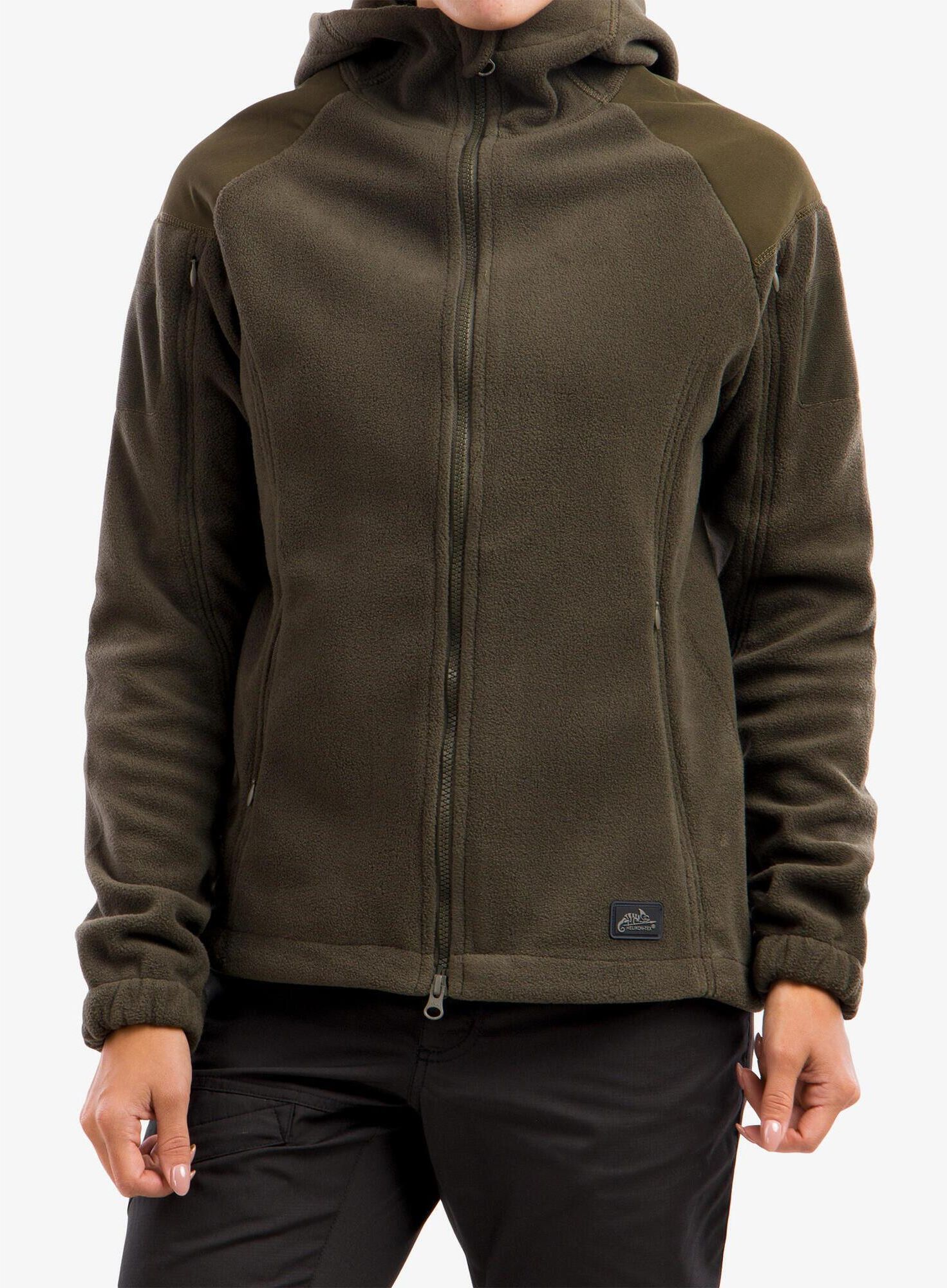 Polar damski Helikon-Tex Cumulus - Heavy Fleece to polska propozycja na niskie temperatury. Polarowy materiał o wysokiej gramaturze stanowi dobrą izolację przed chłodem. Jest też bardzo przyjazny w kontakcie ze skórą. Kiedy nie lubisz zabierać ze sobą saszetki lub biodrówki, pomocą posłużą Ci cztery kieszenie, do których włożysz sporo przedmiotów osobistych. Polar damski Helikon-Tex Cumulus - Heavy Fleece zabierzesz na terenowy szlak, ale wykorzystasz również w mieście. Polar damski Helikon-Tex Cumulus - Heavy Fleece został wykonany z wysokiej jakości poliestru. Ten syntetyczny materiał jest niezwykle miękki, co redukuje ryzyko podrażnień. Ponadto poliester ma właściwości szybkoschnące oraz sprawnie odprowadza wilgoć powstającą przy ciele. W tym modelu zastosowano również domieszkę elastanu, który zapewnia lepsze przyleganie całości. Dół kurtki polarowej pozwala na łatwą regulację, dla jeszcze lepszego dopasowania do ciała. Zastosowanie zamków renomowanej marki YKK® to zapewnienie odpowiedniej wytrzymałości. Dodatkową zaletą są wzmocnienia na ramionach i łokciach. Polar Helikon-Tex Cumulus - Heavy Fleece — najważniejsze cechy: Polar wykonany z poliestru z domieszką elastanu o gramaturze 310 g/m2; Poliester zastosowany w tym modelu jest miły w dotyku i ma właściwości szybkoschnące; Dodatek elastanu zapewnia idealne dopasowanie; Cztery kieszenie - dwie boczne i dwie na rękawach; Zintegrowany kaptur z daszkiem; Zamek dwukierunkowy z ochraniaczem podbródka; Ramiona i łokcie ze specjalnym wzmocnieniem; Elastyczne mankiety; Najwyższej jakości zamki YKK®; Możliwość regulacji w dolnej części; Panele velcro dają możliwość personalizacji; Siatka pod pachami; Krój dopasowany do damskiej sylwetki.