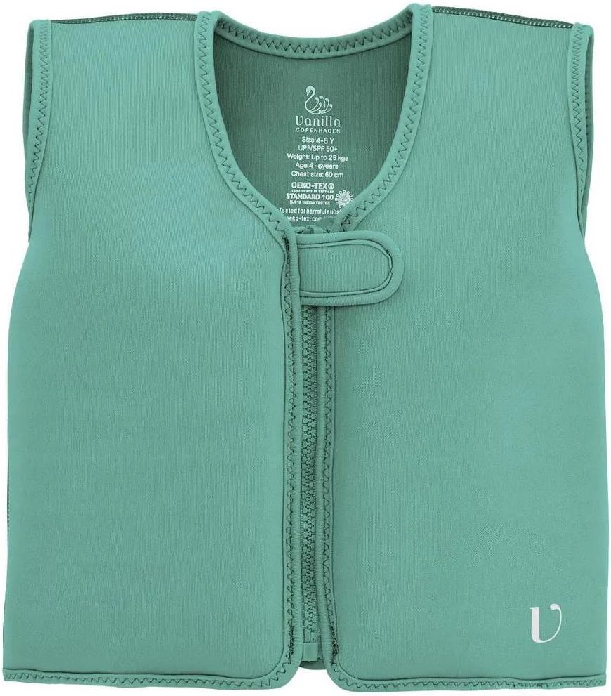 Kamizelka do pływania Neo Aqua Sea 3-6L Neoprenowa kamizelka wypornościowa do pływania marki Vanilla Copenhagen dla dzieci w pięknym morksim kolorze z miętową nutą sprawdzi się idealnie podczas nauki pływania i zabawy, aby maluchy w kamizelce mogły pływać jak rybki w wodzie. Kamizelka zwiększa komfort i bezpieczeństwo dziecka w basenach, w parkach wodnych, nam morzem i są to podstawowe cele i elementy kolekcji kąpielowej Vanilla Copenhagen. Kamizelka posiada osiem wewnętrznych pływaków. Zapewniają one pływalność dostosowaną do rozmiaru, potrzeb i umiejętności pływackich dziecka. Wyporność można regulować, wyjmując pływaki z kieszeni wewnątrz kamizelki. Gdy dziecko znajdzie się na odpowiednim poziomie, będzie mogło z łatwością kontrolować swoją pływalność. Kamizelka jest wykonana z miękkiego neoprenu 2 mm, z wytrzymałą warstwą nylonu po bokach, mocnymi szwami i mocnym zamkiem YKK oraz z zapięciem na rzep, aby dziecko nie mogło jej otworzyć. Kamizelka neoprenowa zwiększa komfort i bezpieczeństwo w wodzie oraz chroni przed słońcem (SPF 50+) UWAGA! Zawsze wyjmuj pływaki parami, zaczynając od pływaka 1&1, następnie 2&2, następnie 3&3 i 4&4. Przy prawidłowej regulacji dziecko z łatwością kontroluje swoją pływalność. Rozmiar: 3-6 lat Waga: 19-25 kg Rozmiar klatki piersiowej: 55-60 cm Europejski standard CE: EN 13138-1: 2014 STANDARD 100 by OEKO-TEX Materiał: Neopren i mocny zamek błyskawiczny YKK. W 100% wolna od ftalanów i lateksu. Wypełnienie z pianki odpornej na przebicie, którą można wyjąć. Wysoka ochrona przed słońcem (SPF 50+) Kamizelka dostępna takze w rozmiarze dla dzieku od 1 do 3 lat - 11-20 kg: osiem wyjmowanych pływaków, zamek błyskawiczny YKK i regulowany pasek bezpieczeństwa między nogami dla idealnego dopasowania. UWAGA: Kamizelka do pływania NIE jest urządzeniem zabezpieczającym. NIE chroni przed utonięciem. Należy zapewnić stały nadzór osoby dorosłej nad dziećmi przebywającymi w wodzie lub w jej pobliżu. VANILLA COPENHAGEN to kreatywna duńska marka mody dziecięcej, którą definiuje klasyczna moda ze spokojnymi, inteligentnymi i uroczymi detalami, w najlepszej możliwej jakości i funkcjonalności. Rodzinna marka premium, stworzona i prowadzona od ponad 25 lat. Znana w Danii z pięknych tekstyliów, posiada w swoim asortymencie pełne uroku akcesoria plażowe, wśród nich kamizelki wypornościowe dla bezpiecznej kąpieli maluszka, designerskie kółka, pływaczki, namioty i tekstylia oraz małe rowerki i kaski, plecaki, bidony, lunch boxy. Podejście do produkcji charakteryzuje się zrównoważonym rozwojem, aby dbać o środowisko i przyczyniać się do stworzenia naszym najmłodszym jak najlepszych warunków w dłuższej perspektywie. Vanilla Copenhagen ze swoim wieloletnim doświadczeniem posiada certyfikaty Oeko-tex, stara się produkować bez strat materialnych i z wielkim poszanowaniem zasobów natury.