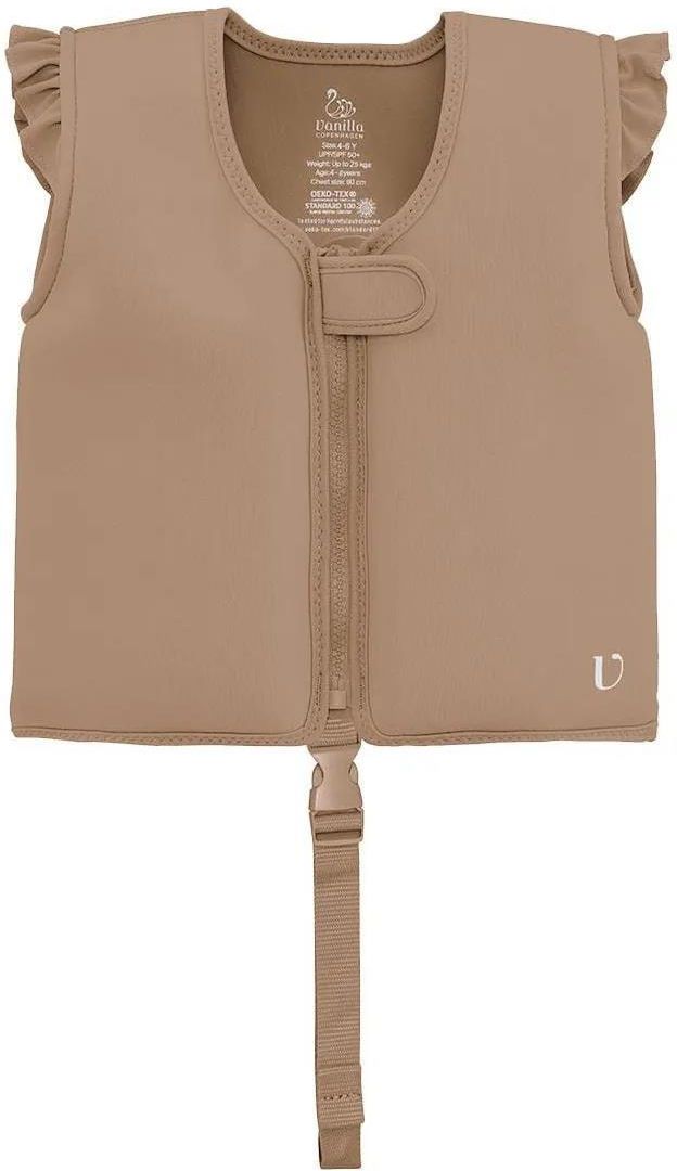 Kamizelka do pływania Neo Oak new 1-3L Kamizelka do pływania Neo Oak new 1-3L Neoprenowa kamizelka wypornościowa do pływania marki Vanilla Copenhagen w uroczym kolorze soczystego beżu, z delikatną falbanką na ramionach, z regulowanym paskiem dla najmłodszych sprawdzi się idealnie podczas nauki …