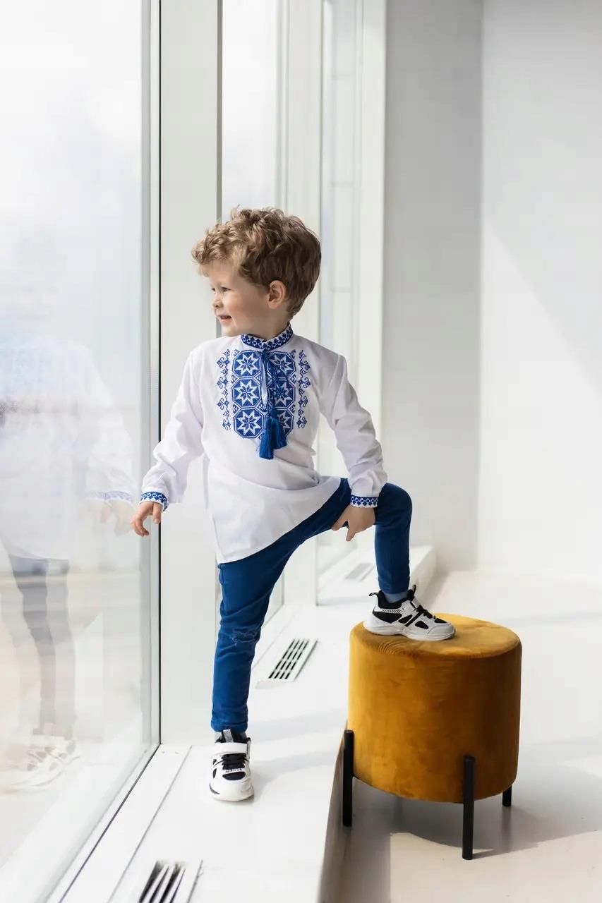 Koszula dla chłopaka z jakościowej bawełny, wykonana bardzo starannie i stylowo. Wygodny krój, piękny haftowany wzór. Haft maszynowy wysokogatunkowy - nie "sciąga się" po praniu, nie puszcza koloru, od strony wewnętrznej jest mięciutki. Koszula w stylu folkowym, "wyszywanka" w stylu ludowym Ukrainy. 52% bawełna, 48% poliester. Wyprodukowane w Ukrainie. Oryginalne autentyczne ukraińskie wzornictwo. Dzięki zastosowaniu wysokiej jakości materiału oferowane produkty zapewnią wygodę i komfort noszenia. Zapraszamy na inne nasze aukcje Ukraińskiej produkcji. Tablica rozmiarów: Rozmiar, Wzrost, Szerokość w piersiach, Szerokość w ramionach, Długość rękawa, Długość wyrobu 1 rok 86: 32, 26, 28, 36 2 latka 92: 34, 27, 33, 41 3 latka 98: 36.5, 29, 37, 45 4 lata 104: 40, 30,5, 39, 47 5 lat 110: 41, 32, 41, 51 6 lat 116: 41.5, 32,5, 43, 52 7 lat 122: 44, 33, 46, 55 8 lat 128: 44, 33,5, 47, 57 9 lat 134: 46, 35, 48, 59 10 lat 140: 46, 36, 51, 60 11 lat 146: 47, 37, 52, 62 12 lat 152: 48, 38, 52,5, 64 Zapraszam serdecznie po więcej ofert slawna.pl