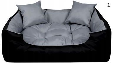 Legowisko posłanie 100x75 wodoodporne czar-szarROZMIAR 100x75 codura nieprzemakalna PVC , wytrzymała na przetarcia , zadrapania odporna na zabrudzenia łatwa w czyszczeniu wypełnienie puszysta włóknina owata duża sprężystość odporność na zniekształcenia pikowana poduszka wewnętrzna 2 małe poduszki