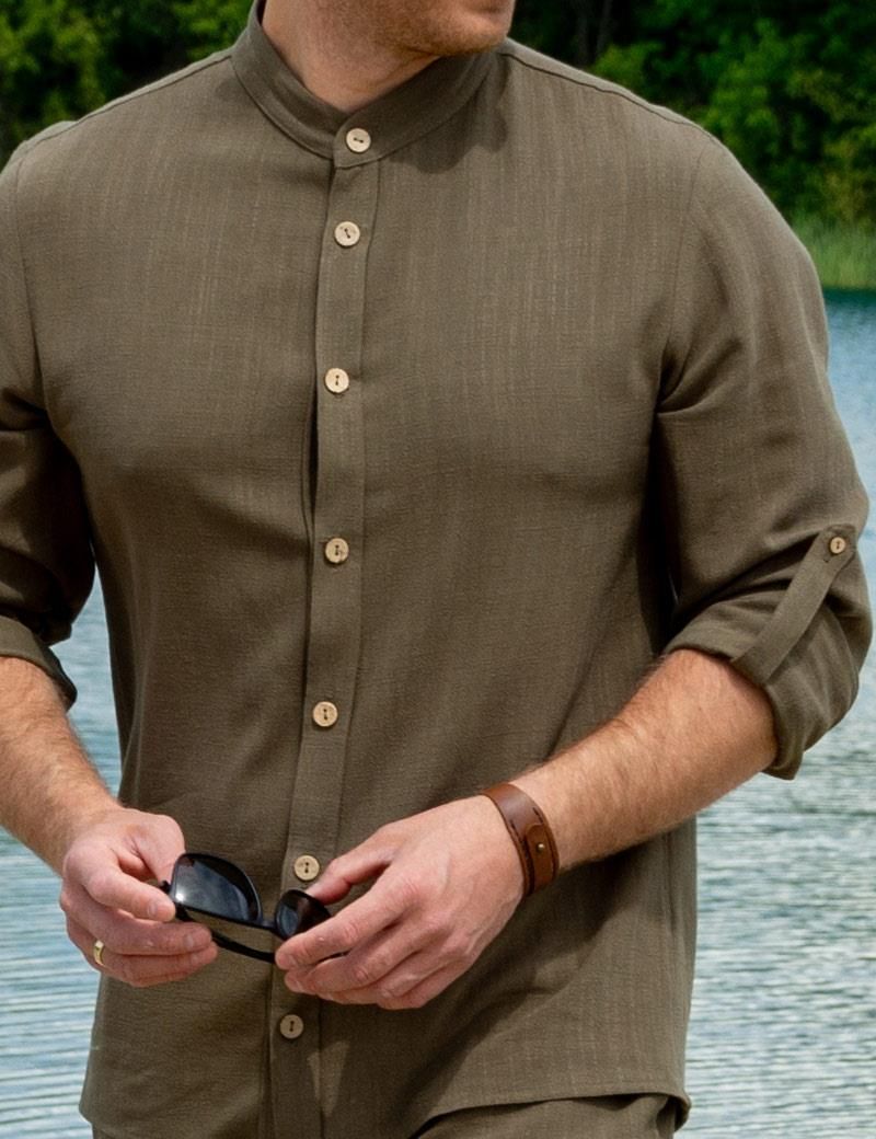 Męska zielona naturalna koszula lniana Toszek
