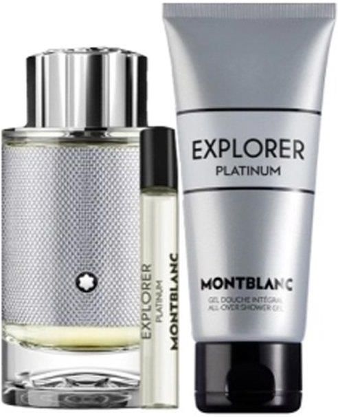 Montblanc Explorer Platinum, , Zestawy dla mężczyzn dla mężczyzn, Podkręć intensywność swojego ulubionego zapachu. Zestaw perfum dla mężczyzn Montblanc Explorer Platinum zawiera nie tylko sam zapach, ale także kosmetyki pielęgnacyjne o tej samej nucie zapachowej, co sprawi, że Twoja codzienna rutyna w łazience będzie idealnie spójna. Właściwości: zawiera pełny rozmiar zapachu i jego miniaturę kosmetyki perfumowane przedłużają trwałość zapachu zestaw zapachów to pomnożona radość Zawartość zestawu: Explorer Platinum woda perfumowana 100 ml Explorer Platinum woda perfumowana 7,5 ml Explorer Platinum żel pod prysznic 100 ml