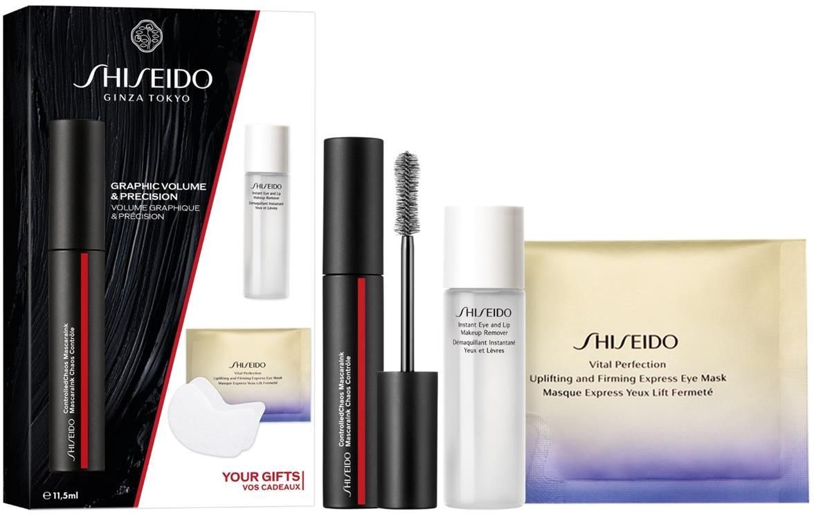 Shiseido ControlledChaos Mascara Set, , maski na oczy dla kobiet, Wszystko dla perfekcyjnego makijażu w jednym opakowaniu. Zestaw kosmetyków Shiseido ControlledChaos Mascara Set zawiera nie jeden, ale kilka elementów upiększających, które pomogą stworzyć lub wzbogacić rutynowy makijaż. Paczka pełna kosmetyków do makijażu ucieszy Ciebie lub, jako prezent, zachwyci Twoich bliskich. Zawartość zestawu: Shiseido Controlled Chaos MascaraInk tusz pogrubiający 11.5 ml Shiseido Vital Perfection Uplifting & Firming Express Eye Mask maseczka ujędrniająco-liftingująca do okolic oczu 6 pair Shiseido Eye & Lip Makeup Remover 30 ml Sposób użycia: Stosuj każdy z produktów z zestawu zgodnie z załączoną do niego instrukcją.