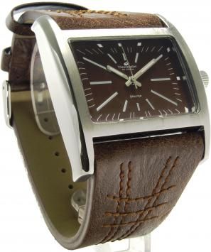 Męski zegarek Timemaster w prostokątnej kopercie, szeroki pasek z przeszyciami.