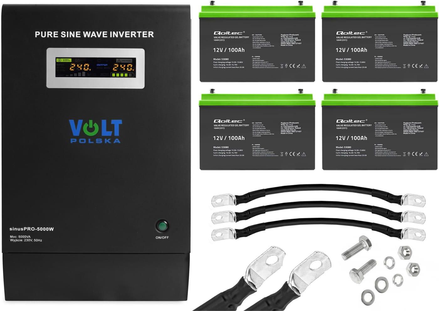 Zestaw: zasilacz awaryjny Volt Sinus Pro 5000 W 5000VA/3400W + 4 x akumulator żelowy Qoltec GEL Professional LongLife 12V 100Ah Toszek