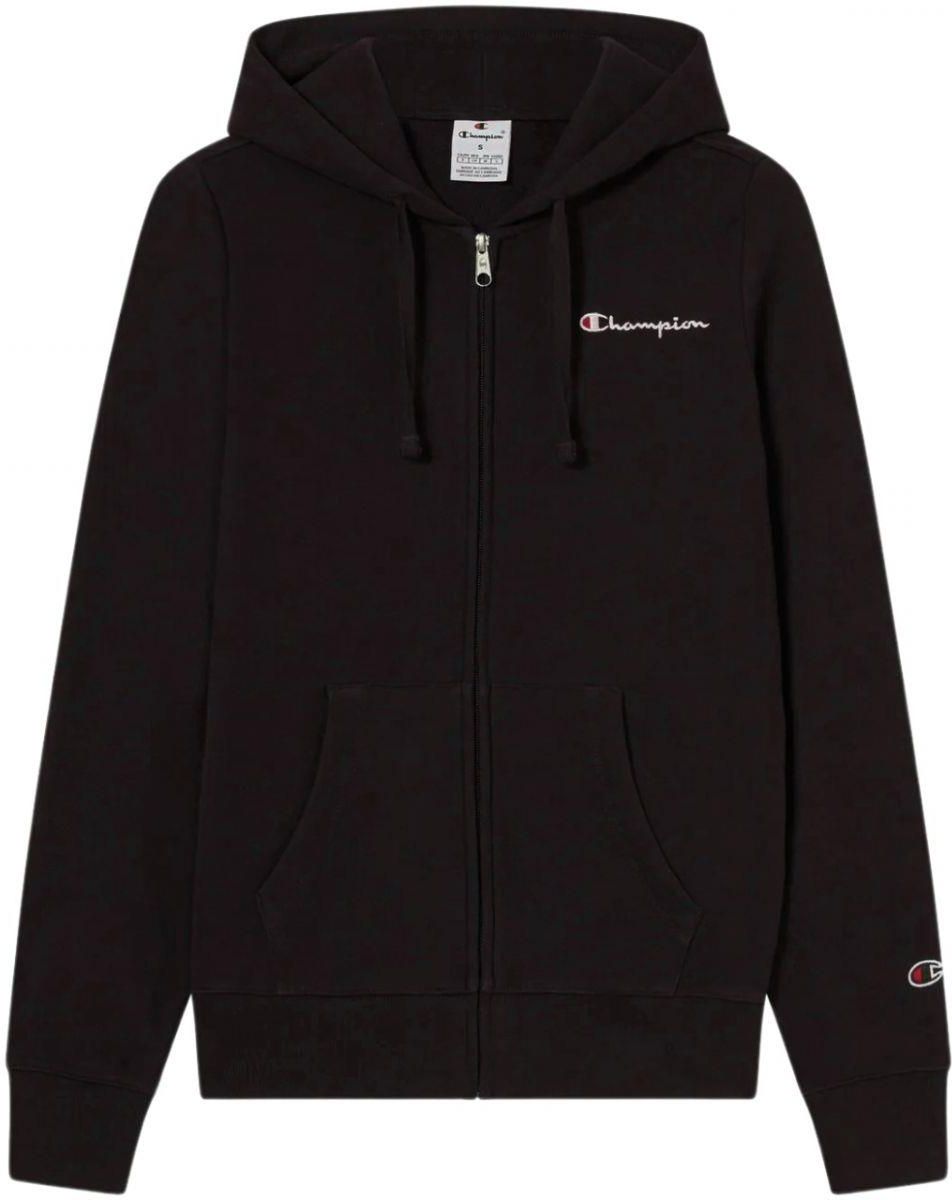 Bluza damska Champion Full Zip Hoodie Sweatshirt czarna 118099 KK001 Właściwości Damska bluza Champion sprawdzi się podczas codziennego użytkowania. Miękki materiał. Dopasowany krój z zamkiem na całej długości. Regulowany, zintegrowany kaptur chroni przed wiatrem i lekkim deszczem. Ściągacze przy mankietach i u dołu zapobiegną utracie ciepła. Dwie, otwarte kieszenie boczne na drobiazgi pozwolą, też ogrzać dłonie w razie potrzeby. Materiał 70% bawełna, 30% poliester