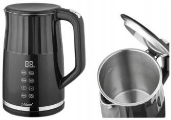 Czajnik elektryczny Maestro MR-049 Czajniki elektryczne to urządzenia, które zrewolucjonizowały nasze codzienne życie, umożliwiając szybkie i wygodne zagotowanie wody. Dzięki nim przygotowanie kawy czy herbaty staje się znacznie prostsze. Warto zwrócić uwagę na produkty oferujące najlepszy stosunek jakości do ceny, a jednym z takich urządzeń jest Czajnik elektryczny Maestro MR-049. Wysoka jakość materiałów i elegancki design Maestro MR-049 to czajnik, który łączy w sobie trwałość i nowoczesny wygląd. Wykonany z wysokiej jakości metalu i tworzywa sztucznego, charakteryzuje się solidnością oraz eleganckim wyglądem, który będzie ozdobą każdej kuchni. Jego czarny kolor nadaje mu dodatkowej elegancji i sprawia, że świetnie wpisuje się w nowoczesne wnętrza. Pojemność i moc Jednym z kluczowych parametrów każdego czajnika jest jego pojemność i moc. Maestro MR-049 oferuje pojemność 1,7L, co pozwala na zagotowanie dużej ilości wody za jednym razem. Dzięki mocy 2200W, woda jest gotowa w bardzo krótkim czasie, co sprawia, że użytkowanie czajnika jest niezwykle wygodne i szybkie. Regulacja temperatury i wskaźnik poziomu wody Czajnik Maestro MR-049 wyposażony jest w funkcję regulacji temperatury, co pozwala na ustawienie odpowiedniej temperatury wody w zależności od potrzeb. Zakres ustawień temperatury obejmuje od 40 do 100°C, dzięki czemu można dostosować parametry do różnych rodzajów herbat czy kaw. Dodatkowo czajnik posiada wskaźnik poziomu wody, co umożliwia dokładną kontrolę ilości gotowanej wody. System grzewczy i funkcje bezpieczeństwa Grzałka płytowa ukryta wewnątrz czajnika zmniejsza ryzyko osadzania kamienia oraz ułatwia jego czyszczenie. Czajnik wyposażony jest również w szereg funkcji bezpieczeństwa, takich jak automatyczne wyłączanie po zagotowaniu, które zapewniają bezpieczne użytkowanie. Kolejną istotną cechą jest ochrona przed przegrzaniem oraz ochrona przed włączeniem bez wody. Dodatkowe funkcje i zasilanie Dzięki wielu dodatkowym funkcjom, ten czajnik elektryczny staje się jeszcze bardziej wszechstronny: dotykowy panel sterowania, utrzymywanie temperatury przez 2 godziny, automatyczne wyłączanie po zagotowaniu, inteligentna kontrola temperatury. Dodatkowo urządzenie wyposażone jest w obrotową podstawę 360°, co zapewnia wygodę użytkowania niezależnie od miejsca jego ustawienia. Podsumowanie to idealny wybór dla osób ceniących sobie wysoką jakość wykonania oraz nowoczesne funkcje. Dzięki jego eleganckiemu wyglądowi oraz zaawansowanym możliwościom regulacji temperatury, będzie doskonałym dodatkiem do każdej kuchni. Moc 2200W oraz pojemność 1,7L gwarantują szybkie przygotowanie gorącej wody na każdą okazję.