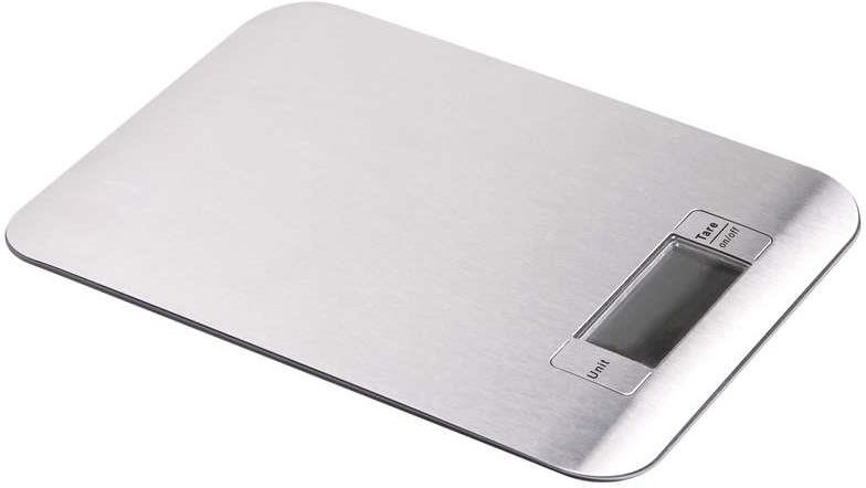 Waga kuchenna EV012 EMOS srebrna Nowoczesna waga kuchenna EV012 marki EMOS to urządzenie, które znajdzie zastosowanie w każdym gospodarstwie domowym. Może być również idealnym prezentem dla osoby lubiącej gotować. Waga kuchenna wyposażona w nowoczesny wyświetlacz LED, na którym odczytamy wartość ciężaru z dokładnością do 1g. Dzięki zastosowaniu popularnej stali nierdzewnej, waga zyskała wysoką trwałość i długą żywotność. Produkt zasilany jest dwoma bateriami CR2032, które są dołączone do zestawu. Waga kuchenna posiada również funkcję automatycznego wyłączenia po 2 minutach bezczynności. Maksymalne obciążenie produktu to 5kg. Precyzyjny pomiar z dokładnością 1g Antypoślizgowe nóżki Podświetlany wyświetlacz LCD Powierzchnia ważąca: stal nierdzewna Wskaźnik przeciążenia Funkcja TARA Wyłączenie automatyczne i ręczne Wskaźnik rozładowania baterii Dane techniczna: Producent: EMOS Model: EV012 Podświetlany wyświetlacz LCD: 58 × 27mm Maksymalny ważony ciężar: do 5kg (2g – 5kg) Rozdzielczość pomiaru: 1g Jednostka pomiarowa: gram, uncja, funt, kilogram Wskaźnik przeciążenia i rozładowanych baterii Automatyczne wyłączenie: po 2 minutach bezczynności Zasilanie: baterie 2× 3V CR2032 (w zestawie) Wymiary: 15 × 163 × 221mm Waga brutto: 440g Instrukcja obsługi