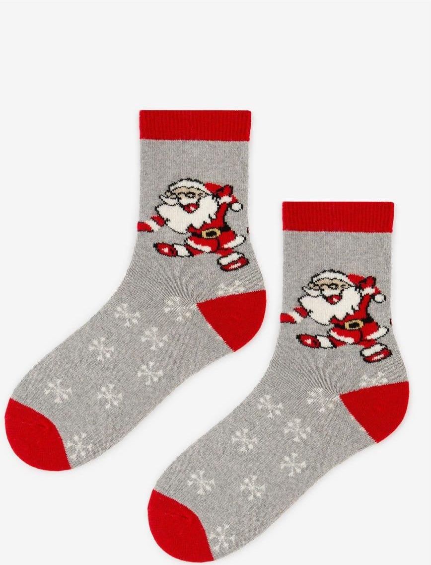 Świąteczne skarpety damskie wykonane z mieszanki angory i wełny, zapewniają doskonałe ciepło i komfort, idealnie chroniąc stopy przed zimnem. Skarpety są elastyczne i dobrze dopasowują się. Skład: 60% poliester, 23% akryl, 5% wełna, 3% angora,2% elastan.