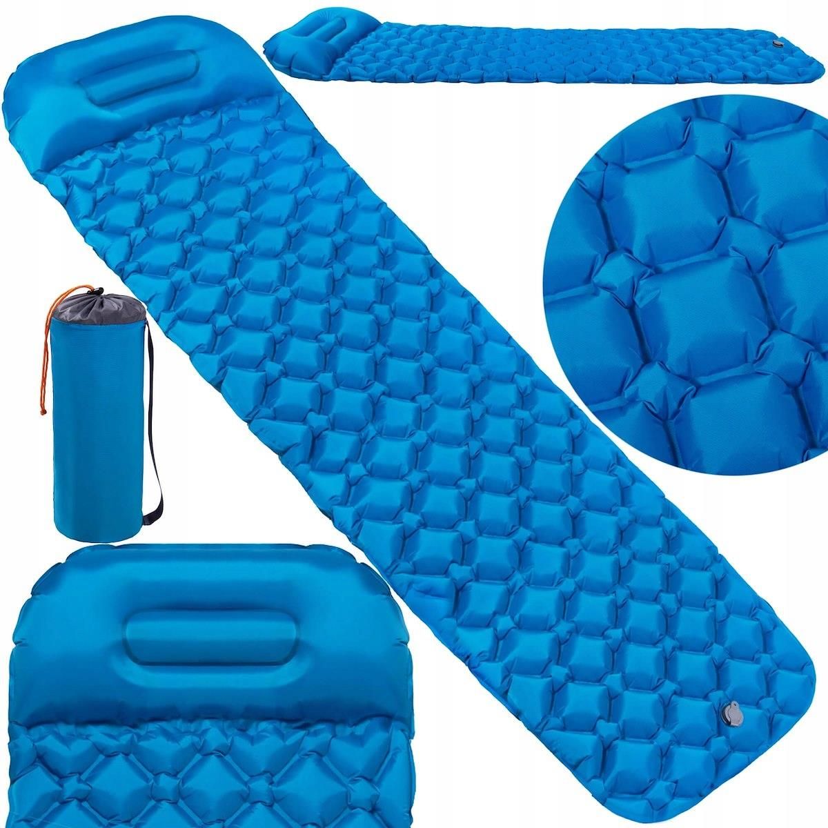 Springos Mata Nadmuchiwana Karimata Turystyczna Pokrowiec 190Cm Dmuchana Materac Odcienie Niebieskiego Trzcianka