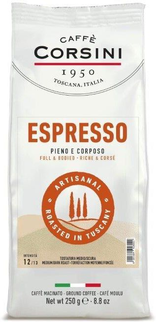 Na kawę Caffè Corsini Espresso składają wysokiej jakości ziarna gatunku Arabica i Robusta, pochodzące z Ameryki Południowej i Afryki. Mocna i zbalansowana w smaku kawa zachwyca z wyraźnie wyczuwalnymi nutami kakao i suszonych owoców.