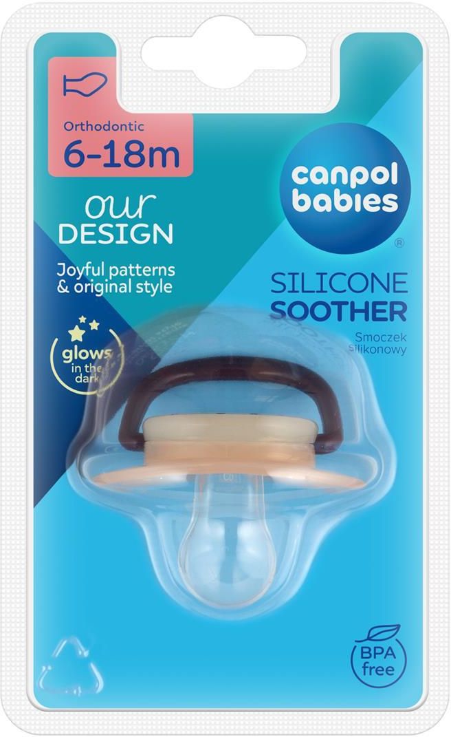 Smoczek Canpol babies Night Dreams róż 18m+ został stworzony z myślą o dzieciach powyżej 18 miesiąca życia. Wyposażony jest w anatomiczną silikonową gumkę, która wspiera prawidłowy rozwój jamy ustnej i zapewnia komfort podczas ssania. Tarczka smoczka została zaprojektowana z otworami wentylacyjnymi, które zapobiegają podrażnieniom skóry wokół ust. Silikonowy materiał jest trwały, higieniczny i bezsmakowy. Uchwyt smoczka świeci w ciemności, co ułatwia jego odnalezienie w nocy. Produkt nie zawiera bisfenolu A i spełnia wysokie standardy bezpieczeństwa. Smoczek wyróżnia się delikatnym pastelowym kolorem oraz motywem nocnym, który uspokaja i wprowadza dziecko w nastrój sprzyjający zasypianiu. Symbol producenta: 22/502