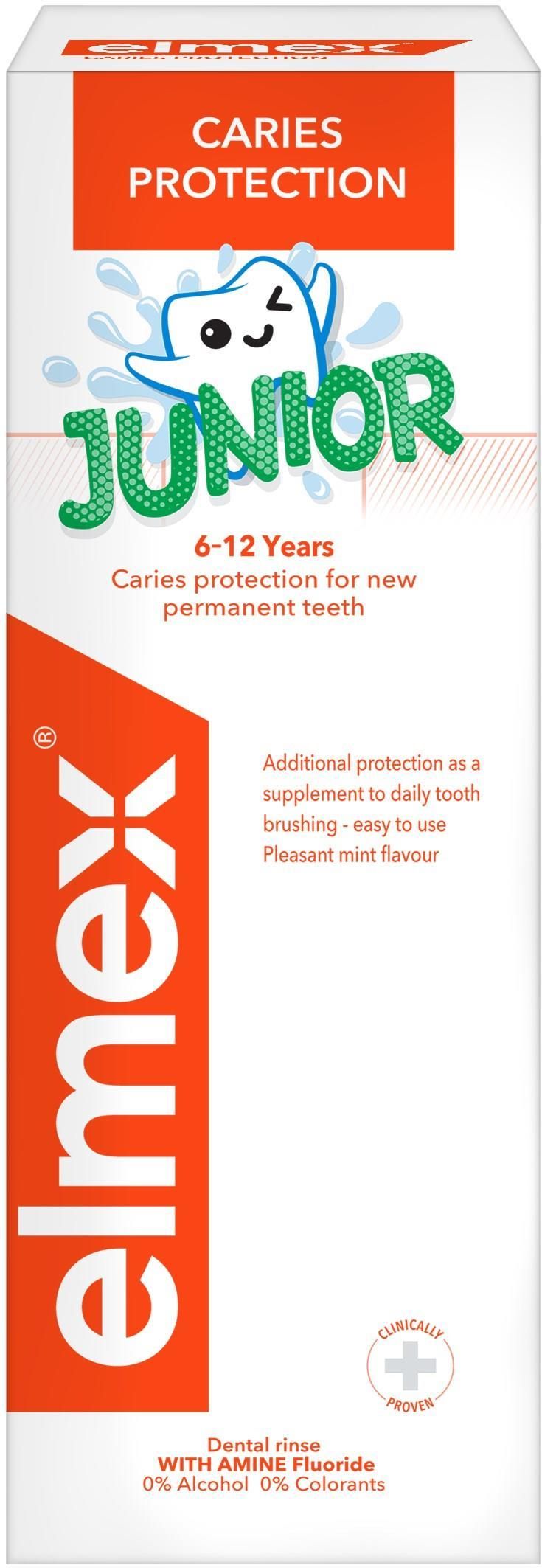 Elmex Junior płyn do płukania jamy ustnej dla dzieci 6-12 lat przeciw próchnicy bez alkoholu 400ml Trzciel