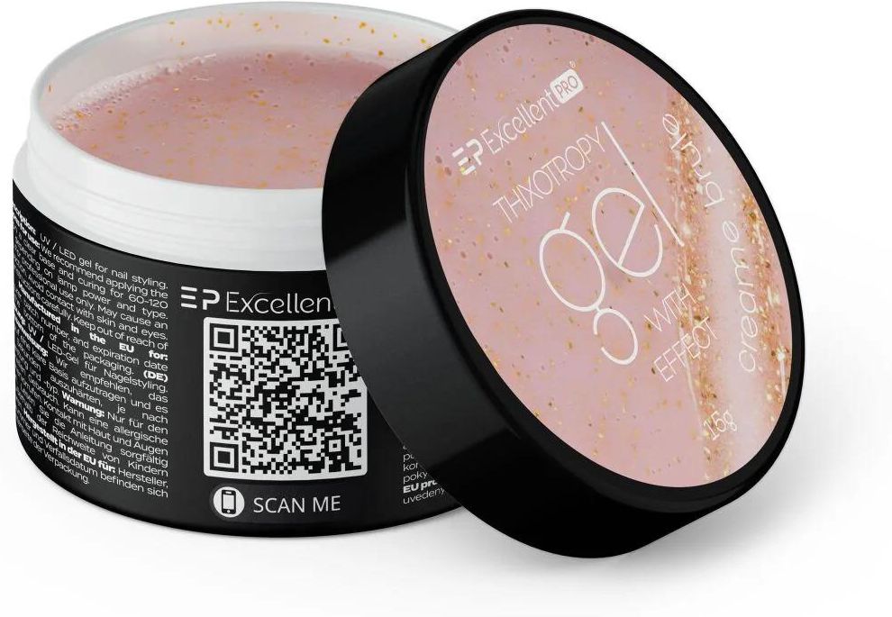 EXCELLENT PRO THIXOTHROPY WITH EFFECT - ŻEL BUDUJĄCY Z BROKATEM - CREAME BRULE 15 g To mleczno-beżowy żel z dodatkiem złotych drobinek o różnych kształtach i różnej wielkości. Dodatek brokatu pozwoli na wykonanie stylizacji bez konieczności użycia hybryd, co znacznie skróci czas wykonania …