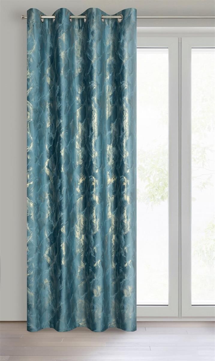 Eurofirany Zasłona Na Przelotkach Z Metalicznym Nadrukiem Melody 140X250 Ciemnoturkusowa Trzebiatów