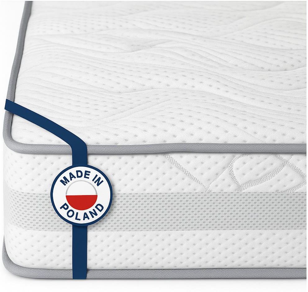 Materac piankowy SUN GARDEN 180x200 23 cm H4 7 stref SilverCARE Siatka 3D Ortopedyczny materac piankowy 80x200 cm, H4, 7 stref – idealne podparcie i komfort snu. Wys. 23 cm, pokrowiec SilverCare (zdejmowany, pranie do 60°C). Odpowiedni dla alergików, trwały, z uchwytami i mocnym zamkiem. Certyfikat Oeko-Tex. Ortopedyczny Materac Piankowy 80x200 cm H4 – 7 Stref Komfortu, SilverCare, Oeko-Tex Zadbaj o swój zdrowy i komfortowy sen dzięki ortopedycznemu materacowi piankowemu o wymiarach 80 x 200 cm i twardości H4 (twardy). To doskonały wybór dla osób poszukujących wygody, trwałości i odpowiedniego wsparcia dla kręgosłupa. Właściwości produktu Rozmiar: 80 x 200 cm Twardość: H4 – twardy, idealny dla osób o wadze powyżej 100 kg Wysokość całkowita: ok. 23 cm – gwarantuje komfort i stabilność Materac ortopedyczny – wspiera naturalne ułożenie kręgosłupa i poprawia jakość snu 7-strefowa konstrukcja – powierzchnia materaca została podzielona na siedem stref o zróżnicowanej twardości, dostosowanych do różnych partii ciała. Dzięki temu każda część ciała otrzymuje indywidualne podparcie, co umożliwia pełną regenerację i odciążenie kręgosłupa. Bezpieczeństwo i higiena Pokrowiec z technologią 3D SilverCare – tkanina wspomaga cyrkulację powietrza, co przeciwdziała nadmiernemu poceniu się oraz rozwojowi bakterii i roztoczy Pokrowiec zdejmowany, nadający się do prania w temperaturze do 60°C – łatwy w utrzymaniu czystości Certyfikat Oeko-Tex Standard 100 – zarówno rdzeń, jak i pokrowiec są wolne od substancji szkodliwych dla zdrowia Materac idealny dla alergików – wykonany w 100% z polipropylenu, materiału przyjaznego dla wrażliwej skóry i bezpiecznego dla osób z alergiami Dodatkowe udogodnienia Wytrzymały i trwały materiał – odporny na deformacje i codzienne użytkowanie Solidny zamek błyskawiczny odporny na rozerwanie – umożliwia szybkie i bezproblemowe zdjęcie pokrowca Praktyczne uchwyty – ułatwiają przesuwanie i podnoszenie materaca Zainwestuj w zdrowy sen i komfort każdej nocy. Ten materac to połączenie ergonomii, nowoczesnych technologii i wysokiej jakości wykonania. Idealny dla każdego, kto szuka solidnego i wygodnego rozwiązania na lata! Stan: Nowy Rozmiar materaca: 80 x 200 cm Rodzaj materaca: Piankowy Twardość materaca: H4 Liczba stref: 7 strefowy Szerokość materaca: 80 cm Długość materaca: 200 cm Wysokość materaca: 23 cm Rodzaj pokrowca: Pikowany Materiał pokrowca: Polyester Skład: 100% polipropylen Temperatura prania: 60 °C Forma pakowania: Zrolowany w kartonie (roll-pack) Informacje dodatkowe: Antyalergiczny, Antygrzybiczny, Materac ortopedyczny, Pianka profilowana, Zdejmowany pokrowiec