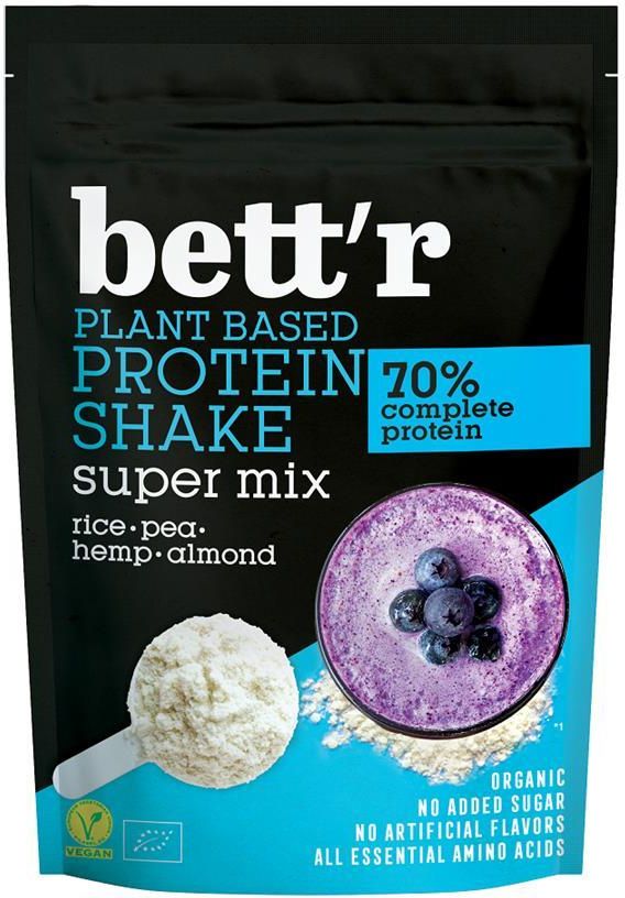 Bett'R Shake Proteinowy Bez Dodatku Cukru Bio 500g Bett'R Shake Proteinowy Bez Dodatku Cukru Bio 500g to wyjątkowa mieszanka białek roślinnych, która z powodzeniem wzbogaci dietę każdego, kto dba o zdrowie i aktywny styl życia. Dzięki ekologicznemu podejściu, ten shake proteinowy oferuje nie tylko wysoką zawartość białka, ale także doskonałą alternatywę dla tradycyjnych źródeł białka, bez dodatku cukrów. Zasobny w niezbędne aminokwasy, stanowi idealne rozwiązanie dla osób szukających zdrowych opcji żywieniowych. Skład i alergeny Mieszanka białek roślinnych w Shake'u Proteinowym to istotny element zdrowej diety, który oferuje cenne składniki odżywcze. Oto składniki, które wchodzą w jego skład: białko ryżowe (35%), białko grochu (30%), białko konopi (20%), białko migdałowe (15%). Te certyfikowane składniki ekologiczne nie tylko dostarczają organizmowi białka, ale również niezbędnych aminokwasów, przyczyniając się do zdrowego funkcjonowania organizmu. Produkt nie zawiera sztucznych dodatków, co czyni go zdrowszym wyborem, a naturalnie występujące cukry sprawiają, że nie trzeba obawiać się o nadmiar kalorii. Wartość odżywcza Wartości odżywcze są kluczowym elementem dla osób dbających o zdrową dietę i chcących monitorować swoje spożycie składników odżywczych. Oto szczegółowe informacje na temat wartości odżywczych w 100 g produktu: wartość energetyczna: 1672 kJ / 502 kcal, tłuszcz: 8,5 g, z czego kwasy tłuszczowe nasycone: 2,9 g, węglowodany: 5,3 g, z czego cukry: 2,3 g, błonnik: 9,1 g, białko: 70 g, sól: 0,48 g. Dzięki wysokiej zawartości białka, produkt ten stanowi doskonałe źródło energii oraz ważnych składników odżywczych, co czyni go idealnym wyborem dla sportowców oraz osób dążących do zdrowych nawyków żywieniowych. Pochodzenie i metoda produkcji Produkt pochodzi z ekologicznych upraw, co oznacza, że wszystkie składniki były uprawiane z poszanowaniem dla natury i w zgodzie z zasadami zrównoważonego rozwoju. Dzięki temu można mieć pewność, że wybierając ten shake, wspieramy odpowiedzialne praktyki rolnicze. Ekologiczne pochodzenie komponentów to gwarancja ich wysokiej jakości oraz bogactwa wartości odżywczych. Certyfikaty i etykiety Certyfikaty i etykiety są ważnym wskaźnikiem jakości produktu. Bett'R Shake posiada szereg certyfikacji, które świadczą o jego wysokiej jakości i zgodności z wymaganiami zdrowotnymi. Warto zwrócić uwagę na: certyfikat BIO, który potwierdza ekologiczne pochodzenie składników, etykieta wegańska, co oznacza, że produkt nie zawiera żadnych składników pochodzenia zwierzęcego, informacja o braku glutenu, co czyni go bezpiecznym wyborem dla osób z nietolerancją na ten składnik, produkt jest także bezcukrowy, co sprawia, że jest idealną opcją dla osób dbających o linię oraz zdrowie. Informacje dietetyczne Shake Proteinowy Bez Dodatku Cukru Bio zadowoli wiele grup osób ze względu na swoje właściwości dietetyczne. Jest wegański, bezglutenowy oraz bez laktozy, co czyni go odpowiednim dla osób z różnymi preferencjami żywieniowymi. Dzięki temu można go spożywać z pełnym przekonaniem, że spełnia oczekiwania związane z zdrowym odżywianiem. Pojemność produktu Bett'R Shake Proteinowy Bez Dodatku Cukru oferowany jest w poręcznym opakowaniu o pojemności 500 g. To idealna ilość, która pozwoli na dłuższe korzystanie z produktu, a także umożliwi urozmaicenie codziennych posiłków. Produkt ten idealnie nadaje się do przygotowania pysznych smoothie, koktajli białkowych czy owocowych, co sprawia, że każdy posiłek staje się pełnowartościowy i odżywczy.