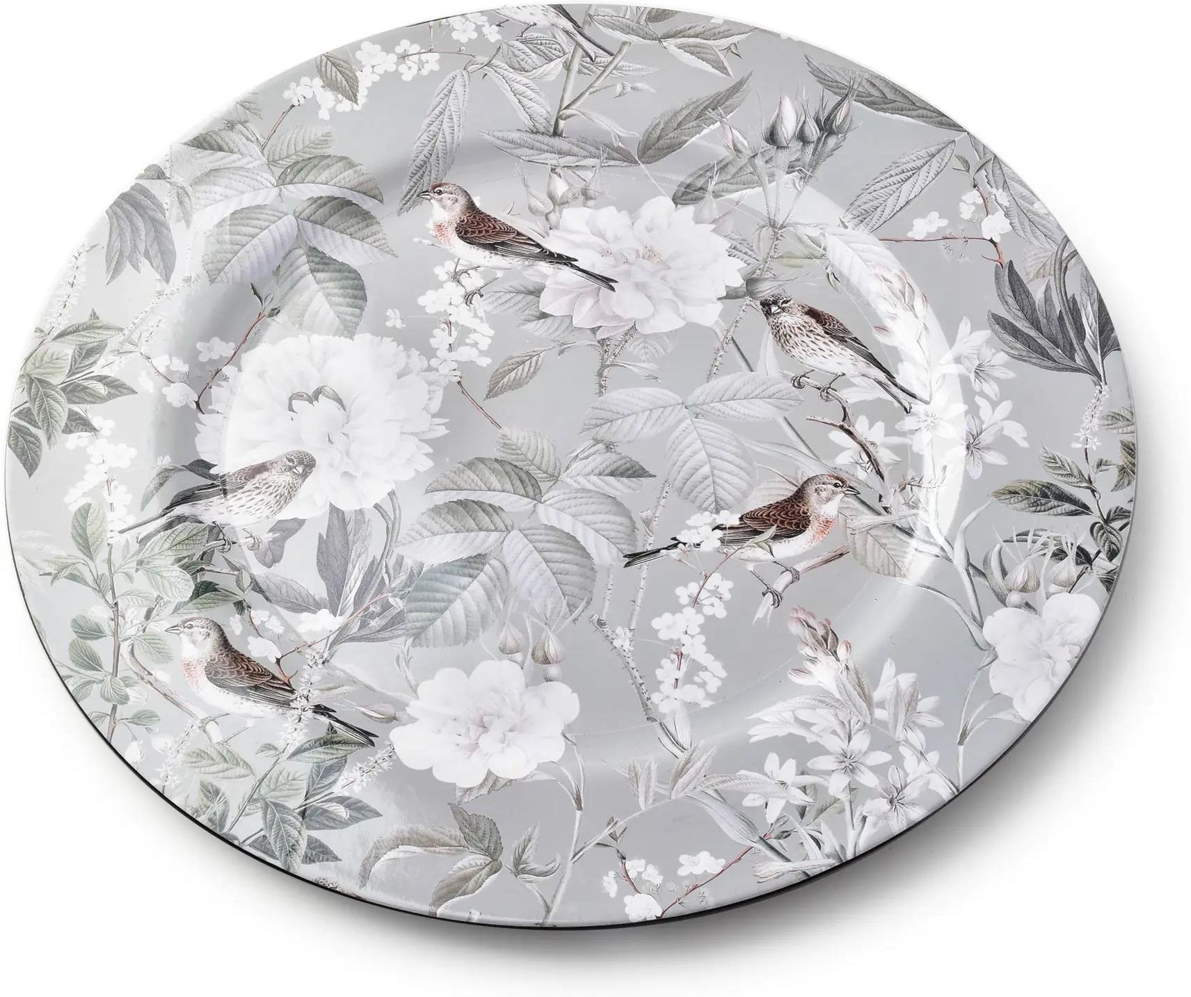 Urocza podkładka dekoracyjna pod talerz z serii BLANCHE COLOURS marki Mondex. Podtalerz jest koloru szarego błyszczącego, ozdobiony połyskującymi, białymi kwiatami oraz ptakami. Średnica podstawki 33 cm. Podkładkę pod talerz można wykorzystać także jako podstawkę pod kreatywne dekoracje np. …