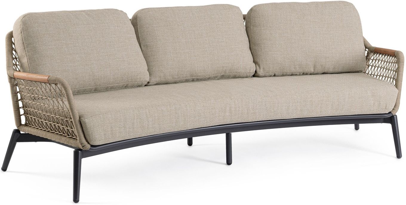 Sofa ogrodowa BOLZANO Etrusco w kolorze antracyt/beż łączy nowoczesny styl z nutą boho. Wygodne poduszki, stabilna konstrukcja i plecione boki tworzą idealne miejsce relaksu.