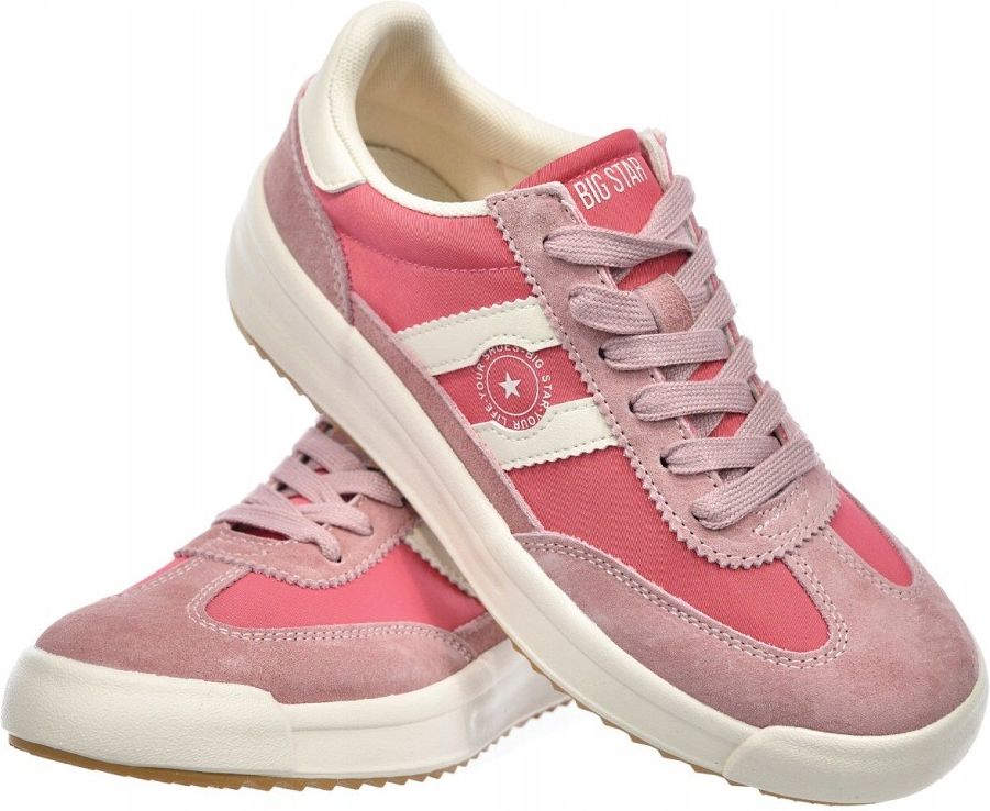 Damskie buty firmy BIG STAR model: TT274160 kolor: różowy Sneakersy damskie BIG STAR SHOES to wygodne i stylowe obuwie stworzone z myślą o kobietach ceniących modny wygląd oraz komfort podczas codziennego użytkowania. Nowoczesny design inspirowany stylem casual sprawia, że model doskonale pasuje do wielu stylizacji – zarówno tych codziennych, jak i bardziej miejskich. Charakterystyczna forma łączy klasyczne elementy z nowoczesnymi trendami, dzięki czemu buty świetnie uzupełniają garderobę. Cholewka wykonana z wysokiej jakości materiałów tekstylnych zapewnia lekkość oraz dobrą cyrkulację powietrza. Starannie wykończone wnętrze zwiększa wygodę podczas noszenia, a solidna konstrukcja sprawia, że obuwie sprawdzi się podczas codziennych aktywności. Sneakersy BIG STAR SHOES to praktyczny wybór dla osób, które szukają wygodnych i uniwersalnych butów o modnym charakterze. PARAMETRY TECHNICZNE Materiał zewnętrzny: materiał tekstylny Materiał wewnętrzny: materiał tekstylny Wkładka: standardowa Rodzaj spodu: płaski Tabela rozmiarów (+/- 0,2 cm) 36 - Długość wkładki: 23,5 cm 37 - Długość wkładki: 24 cm 38 - Długość wkładki: 24,5 cm 39 - Długość wkładki: 25,5 cm 40 - Długość wkładki: 26 cm 41 - Długość wkładki: 26,5 cm 42 - Długość wkładki: 27 cm ZASTOSOWANE TECHNOLOGIE: Cholewka wykonana z materiału tekstylnego zapewnia odpowiednią cyrkulację powietrza oraz lekkość obuwia, co zwiększa komfort podczas codziennego użytkowania.