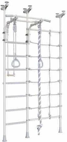 Drabinka do ćwiczeń Merkury 3 ELEMENTY ZESTAWU metalowa drabina gimnastyczna drążek przesuwny koła gimnastyczne lina gimnastyczna huśtawka gimnastyczna (trapez) słupek z pajęczyną WAZNE Słupek zamontujemy z dowolnej strony i pod dowolnym kątem do drabinki gimnastycznej Zestaw przeznaczony dla dzieci od 3 lat i dorosłych Dopuszczalne obciążenie drabinki z drążkiem: 100 kg Dopuszczalne obciążenie akcesoriów i siatki: 50 kg Wysokość zestawu: 232 cm - 280 cm Szerokość drabinki: 53 cm Szerokość słupka: 87,6 cm Szerokość całkowita: 157 сm Głębokość: 75,5 cm Montaż: rozporowo Kolorystyka: żółto-niebieski, żółto-jasnozielony, żółto-pomarańczowy, żółto-srebrny Zalecenia producenta: dzieci od 3 do 7 lat powinny ćwiczyć tylko pod nadzorem rodziców Zalecana bezpieczna odległość od ściany zapobiegająca zakleszczeniu głowy dziecka: 25 cm