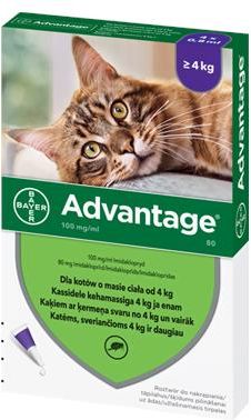 Skład:1 ml roztworu zawiera 100 mg imidaklopridu Właściwości:Imidakloprid, pochodna imidazolu, jest substancją o działaniu insektobójczym stosowanym do zwalczania pasożytów zewnętrznych. Należy do nowej grupy związków o nazwie chloronikotynyli. Ze względu na swoją budowę chemiczną jest nitroguanidynochloronikotynylem Imidakloprid łączy się trwale z postsynaptycznymi receptorami nikotynowymi układu cholinergicznego, blokuje przewodzenie bodźców nerwowych powodując paraliż i śmierć owadów. Ze względu na barierę krew-mózg, którą imidakloprid przenika tylko w niewielkim stopniu, oraz odmienną budowę receptorów nikotynowych Advantage jest bezpieczny dla ssaków. Obserwuje się dobrą tolerancję na lek nawet po stosowaniu dawek przekraczających 10 razy dawkę terapeutyczną.W przypadku niezgodnego z zaleceniem sposobu przyjęcia leku np. doustnie (przez ludzi i zwierzęta) ryzyko wystąpienia zatrucia jest minimalne. Jeśli wystąpi, przebiegać może z objawami zaburzeń koordynacji ruchowej, drgawkami, drżeniem mięśni i zwolnieniem częstości oddechów. Po nakropleniu na skórę zwierzęcia preparat w krótkim czasie rozprzestrzenia się po jej powierzchni, działając w sposób kontaktowy. Preparat działa bardzo szybko. Większość pcheł ginie w ciągu pierwszych godzin od zastosowania zanim zdąży ugryźć zwierzę. Działania niepożądane:Z powodu gorzkiego smaku, może wystąpić u kotów okresowe ślinienie się w przypadku zlizania preparatu z miejsca podania, bezpośrednio po aplikacji. Dawkowanie:Koty o wadze do 4 kg m.c. - 1 tubka Advantage 0,4 ml / kotaKoty powyżej 4 kg m.c. - 1 tubka Advantage 0,8 ml / kota. Przed podaniem preparatu należy dokładnie dobrać wielkość opakowania do masy ciała zwierzęcia. Po otwarciu preparatu rozchylić włosy zwierzęcia na grzbiecie między łopatkami i lekko ściskając tubkę zdeponować jej zawartość na skórze pacjenta. Nie wcierać. Unikać bezpośredniego kontaku środka z błonami śluzowymi i oczami.98 - 100% pcheł ginie w ciągu pierwszej doby od zastosowania preparatu. Jednokrotna terapia zabezpiecza zwierzę przed inwazją na okres 4 tygodni. Warunki przechowywania:Przechowywać w chłodnym i suchym miejscuTrwałość: 48 miesięcy Ostrzeżenia: preparat do użytku zewnętrznego unikać kontaktu ze skórą, oczami i ustami po zabiegu dokładnie umyć ręce podczas zabiegu nie jeść, nie pić, nie palić w przypadku kontaktu preparatu ze skórą wykonującego zabieg zmyć wodą i mydłem Sporadycznie, podobnie jak przy stosowaniu innych preparatów mogą wystąpić reakcje ze strony skóry (np. świąd, podrażnienie, alergia). Przy dostaniu się do oka obficie wypłukać je wodą. W razie utrzymującego się podrażnienia oraz po przypadkowym połknięciu udać się do lekarza. Przechowywać w miejscu niedostępnym dla dzieci oraz z dala od żywności i pokarmu dla zwierząt. W związku z nowelizacja przepisów dotyczących obrotu lekami OTC informujemy Państwa o podmiocie w którym zarejestrowana została nasza firma i uzyskała zgodę na obrót lekami OTCDane kontaktowe Wojewódzkiego Inspektoratu weterynarii40-585 Katowice, ul. Brynowska 25aTel.: 32 42-88-610Fax: 32 42-88-627punkt.kontaktowy@katowice.wiw.gov.plhttps://katowice.wiw.gov.pl/