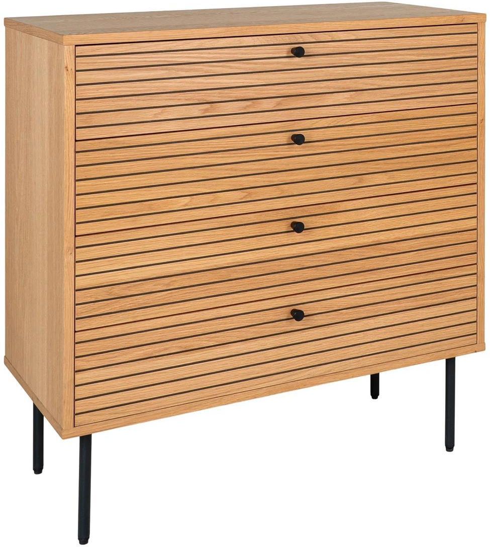 Kyoto komoda - komoda, fornir dębowy, czarne metalowe nogi, 4 szuflady, 80x40x85 cm komoda, fornir dębowy, czarne metalowe nogi, 4 szuflady, 80x40x85 cm