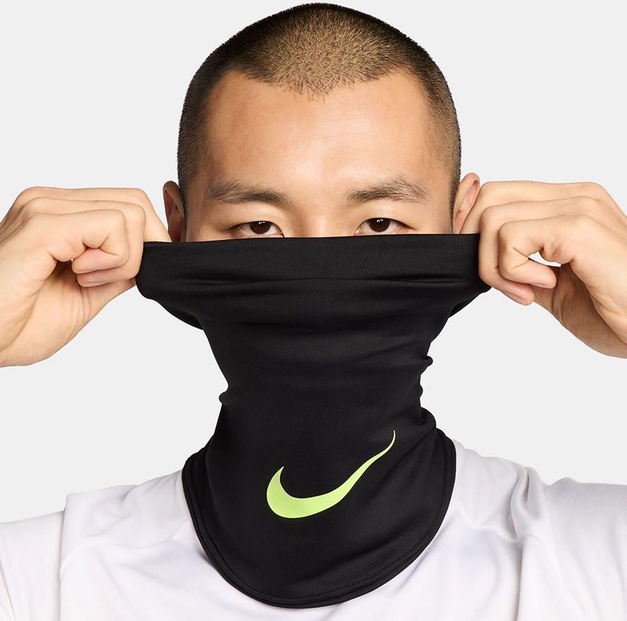 Właściwości komin marki Nike doskonale sprawdzi się podczas aktywności wykonany z oddychającej tkaniny logo producenta Materiał poliester Kolor czarny