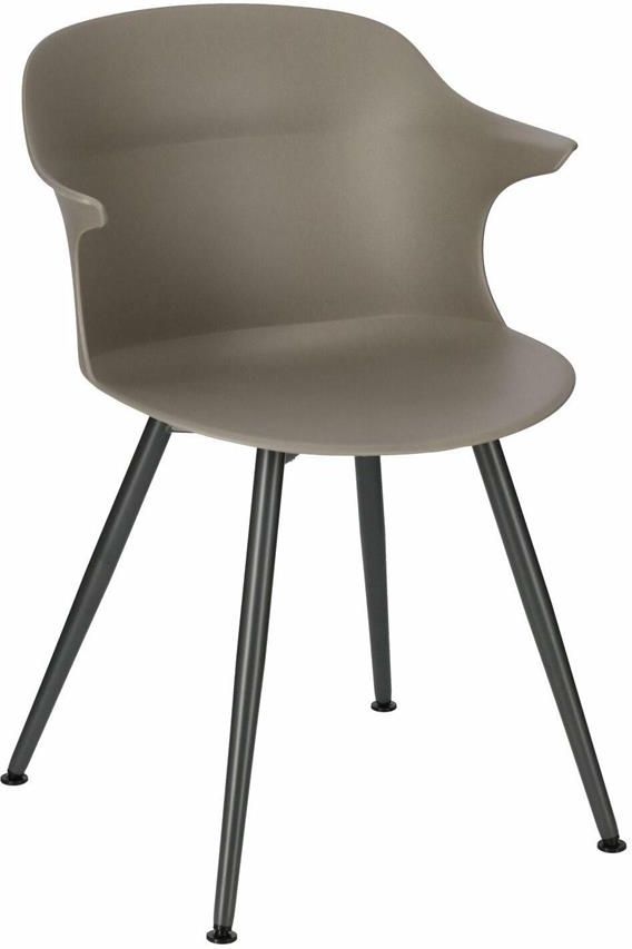 OSTATNIA SZTUKA !!! Krzesło z tworzywa o metalowej podstawie, jakim jest Skal to idealny mebel do restauracji lub przestrzeni komercyjnej. Siedzisko o wyjątkowo wysokim oparciu z delikatnymi podłokietnikami jest na pewno komfortowe i sprzyja długotrwałej posiadówce. Krzesło jest wyprofilowane w odcinku lędźwiowym. Krzesło jest łatwe w czyszczeniu dzięki zastosowaniu półmatowego tworzywa oraz metalowych nóg. Nogi krzesła zostały pomalowane proszkowo na kolor antracytowy. Wysokość: 80 Szerokość: 55,5 Głębokość: 45 Wysokość siedziska: 48 Wysokość podłokietników: 68