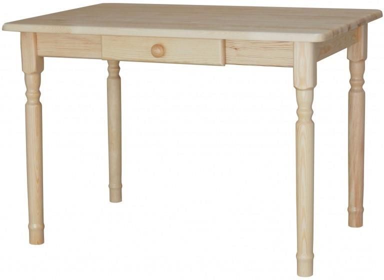 Stół sosnowy z szufladą i Toczonymi Nogami 80/160 SOSNA Stół zrobiony z litego drewna sosnowego, podwójnie lakierowany. Do lakierowania naszych wyrobów używamy lakierów posiadających atest Państwowego Zakładu Higieny. Możemy przygotować produkt surowy, gotowy do samodzielnego polakierowania. …