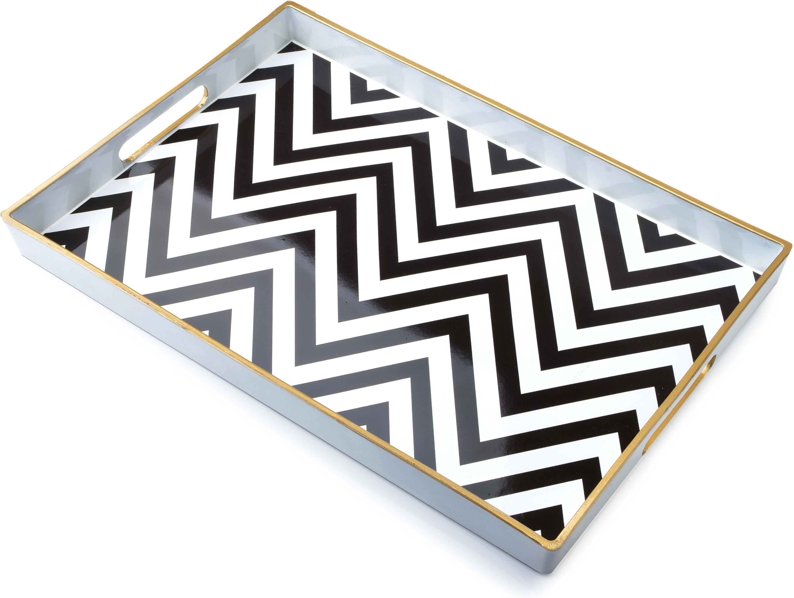 Mondex Blanche Taca Dekoracyjna 40X26Xh3,5Cm Czarno-Białe Paski Trzebinia