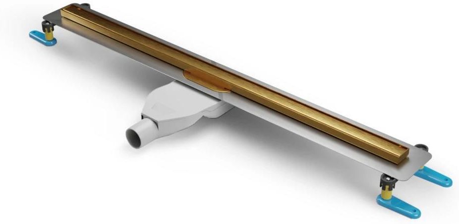 New Trendy Visio Slim Gold odpływ liniowy 60 cm niski złoty szczotkowany OL-0081 Złoty odpływ liniowy Visio Slim - wymiary szerokość rusztu: 60 cm, szerokość całego odpływu z flanszą: 66 cm, głębokość zabudowy do kołnierza: 4,8 cm, wysokość rusztu: 1,5 cm slim: wąski ruszt kolor rusztu: złoty szczotkowany, Nóżki regulowane Rynna odwodnieniowa System podwójnego odprowadzania wody Niska zabudowa [ wysokość to tylko 48 mm do kołnierza rynny ] Membrana uszczelniająca, 5 lat gwarancji, łatwy montaż, Syfon z polipropylenu Przepustowość syfonu: 28 L / min W komplecie rynnę odwodnieniową ruszt nóżki regulowane z mocowaniem i elementami do kotwienia membranę uszczelniającą syfon wykonany w 100% z polipropylenu instrukcję montażu New Trendy jest polskim producentem obecnym na rynku wyposażenia łazienek od 2006 roku. New Trendy specjalizuje się w produkcji kabin prysznicowych i brodzików. Cechą wspólną każdego z produktów jest połączenie wysokiej jakości materiałów i najnowszych trendów wnętrzarskich. Nowoczesne rozwiązania i stały rozwój zaowocowały szerokim, kompletnym katalogiem produktów. Łatwy i szybki montaż Regulowane nóżki rynien zapewniają nieskomplikowany montaż produktów Gwarancja Opieka serwisowa w okresie gwarancyjnym to potwierdzenie jakości naszych produktów Easy clean Wykorzystane materiały oraz konstrukcja rynien i syfonów sprawiają, że produkt spełnia najwyższe wymagania techniczne Stal nierdzewna Rynny i ruszty odwodnień liniowych wykonane są ze stali odpornej na korozję Najwyższa jakość Produkt wykonany z materiałów najwyższej jakości Opis produktu Odpływy liniowe Visio Slim Gold zostały wykonane z najwyższej jakości stali, odpornej na korozję. Dzięki zastosowaniu metody szkiełkowania w procesie produkcji, są zabezpieczone przed działaniem czynników chemicznych. Odznaczają się bardzo dobrą przepustowością oraz łatwością czyszczenia. Regulowane nóżki rynien zapewniają nieskomplikowany montaż produktu. Odwodnienia liniowe kolekcji Visio Slim Gold objęte są 5-letnim okresem gwarancji. Wysoka przepustowość syfonu to 28 l/min.