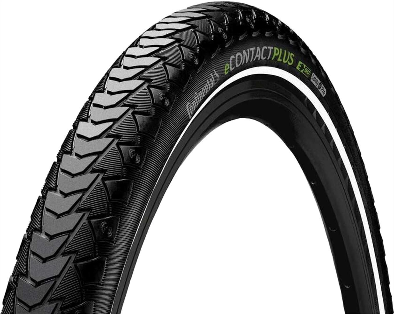 Jeżeli szukasz opony, która sprawdzi się w codziennym użytkowaniu w mieście to Continental eContact Plus będzie dla Ciebie właściwym wyborem. Zaprojektowano ją specjalnie dla osób, które wykorzystują rower jako środek transportu do pracy. Są bardzo wytrzymałe i zapewniają świetne parametry jezdne. Continental to marka, która słynie z produkcji wysokiej jakości ogumienia. Produkt jest odpowiedni do rowerów elektrycznych. Do wykonania modelu wykorzystano technologię Plus Pro Breaker. Łączy ona wytrzymałą mieszankę gumową ze specjalnymi włóknami PolyX. Takie rozwiązanie gwarantuje wysoką odporność na przebicia, co zwiększa bezpieczeństwo i pewność podczas jazdy. Dzięki temu model jest szczególnie polecany właścicielom rowerów elektrycznych. Bez problemu zniesie obciążenia związane z użytkowaniem w e-bike’u, a oponę wyróżnia długa żywotność. Konstrukcja ogumienia pozwala także na wykorzystywanie go w rowerach cargo. Bez problemu wytrzyma jazdę ze sporym bagażem zapewniając odpowiednią stabilność na zakrętach. Warto zwrócić uwagę również na innowacyjną rzeźbę bieżnika. Zwarty wzór gwarantuje świetną przyczepność i wysoką odporność na uszkodzenia mechaniczne. Dzięki niemu oraz odpowiedniej mieszance oponę Continental eContact Plus charakteryzują też niskie opory toczenia, co zwiększy zasięg podczas jazdy na rowerze elektrycznym. Opona sygnowana jest symbolem e50, co oznacza, że może być stosowana zarówno w zwykłych rowerach elektrycznych oferujących wspomaganie do prędkości 25 km/h, jak i szybkich s-pedelecach.