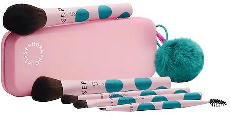Wszystkie niezbędne kosmetyki do pielęgnacji cery i oczu w jednym etui na pędzle do makijażu. 5 niezbędnych pędzli o ekskluzywnym designieOdkryj na nowo pędzle z kolekcji Les Essentiels SEPHORA COLLECTION o ekskluzywnym designie. Dzięki różowym wykończeniom z zielonymi kropkami nadają one Twojej codziennej rutynie makijażowej odrobinę świątecznego charakteru, której dotychczas brakowało. Wykonane z włókien wegańskich (1), ich główki naśladują miękkość i precyzję naturalnego włosia, co zapewnia intuicyjne użytkowanie. Znajdziesz tu wszystko, czego potrzebujesz, by nałożyć podkład, pudrować twarz i rozświetlić oczy. Idealny zestaw pędzli dla każdej fanki makijażu. Jako bonus : silikonowe etui podróżne Niespodzianka, która wywołuje uśmiech na Twojej twarzy po rozpakowaniu ? Zestaw 5 pędzli do makijażu zawiera różowe silikonowe etui do przechowywania. Jest niezbędne do ochrony włosia pędzli przed kurzem i tarciem oraz pozwala na ich bezpieczny transport. A dzięki ozdobnemu zielonemu pomponowi z pewnością zrobi furorę. Zabieraj to urocze etui ze sobą wszędzie, aby mieć wszystkie niezbędne akcesoria pod ręką. Zalety zestawu pędzli SEPHORA COLLECTION- 2 pędzle do twarzy + 3 pędzle do oczu w standardowym formacie. Taka sama jakość jak w przypadku serii Les Essentiels, nowy wygląd w limitowanej edycji. Ultra miękkie włókna wegańskie (1). Etui ozdobione zielonym pomponem. Etykieta prezentowa jest wykonana z kartonu wyprodukowanego z drewna pochodzącego z lasów zarządzanych w zrównoważony sposób. (1) Z włókien syntetycznych, bez składników pochodzenia zwierzęcego.