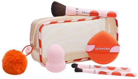 Przenieś swój imprezowy look na wyższy poziom z zestawem pędzli i akcesoriów do makijażu. Wszystkie pędzle i akcesoria do makijażu, których potrzebujeszMakijaż imprezowy dopracowany od A do Z. Dzięki temu zestawowi w limitowanej edycji masz wszystko pod ręką. Co zawiera? 3 pędzle z kolekcji Essentials SEPHORA COLLECTION, teraz w świątecznym różowym wydaniu z pomarańczowymi kropkami. 1 do policzków. 2 do oczu. Włókna wegańskie (1) inspirowane właściwościami włókien naturalnych, zapewniające miękkość i najwyższą precyzję aplikacji. Jeśli chodzi o cerę, stawiamy na duet gąbek do makijażu. Wśród nich nowy produkt marki na rok 2025 : Tap That Puff* to miękka poduszeczka z gąbki zaprojektowana tak, aby zapewnić optymalne rezultaty już po kilku dotknięciach. Urocza torebka, dzięki której zabierzesz ze sobą wszystkie niezbędne drobiazgiW tym świątecznym zestawie czeka na Ciebie łącznie 5 akcesoriów. A ponadto ? Produkty są zapakowane w przezroczystą torebkę prezentową ze złotą nitką. Ozdobiona pomarańczowym pomponem, idealnie sprawdzi się jako upominek kosmetyczny pod choinkę. To także doskonały towarzysz wakacyjny, który pomieści niezbędne kosmetyki w każdej podróży. Zalety zestawu akcesoriów do makijażu SEPHORA COLLECTION- 3 niezbędne pędzle + 2 modne gąbeczki. Ta sama jakość co pędzle Les Essentiels, ale nowy wygląd. Ultra miękkie włókna wegańskie (1). Ładna torebka na prezent. Etykieta prezentowa jest wykonana z kartonu wyprodukowanego z drewna pochodzącego z lasów zarządzanych w zrównoważony sposób. (1) Z włókien syntetycznych, bez składników pochodzenia zwierzęcego. (*) Poklep gąbkę.