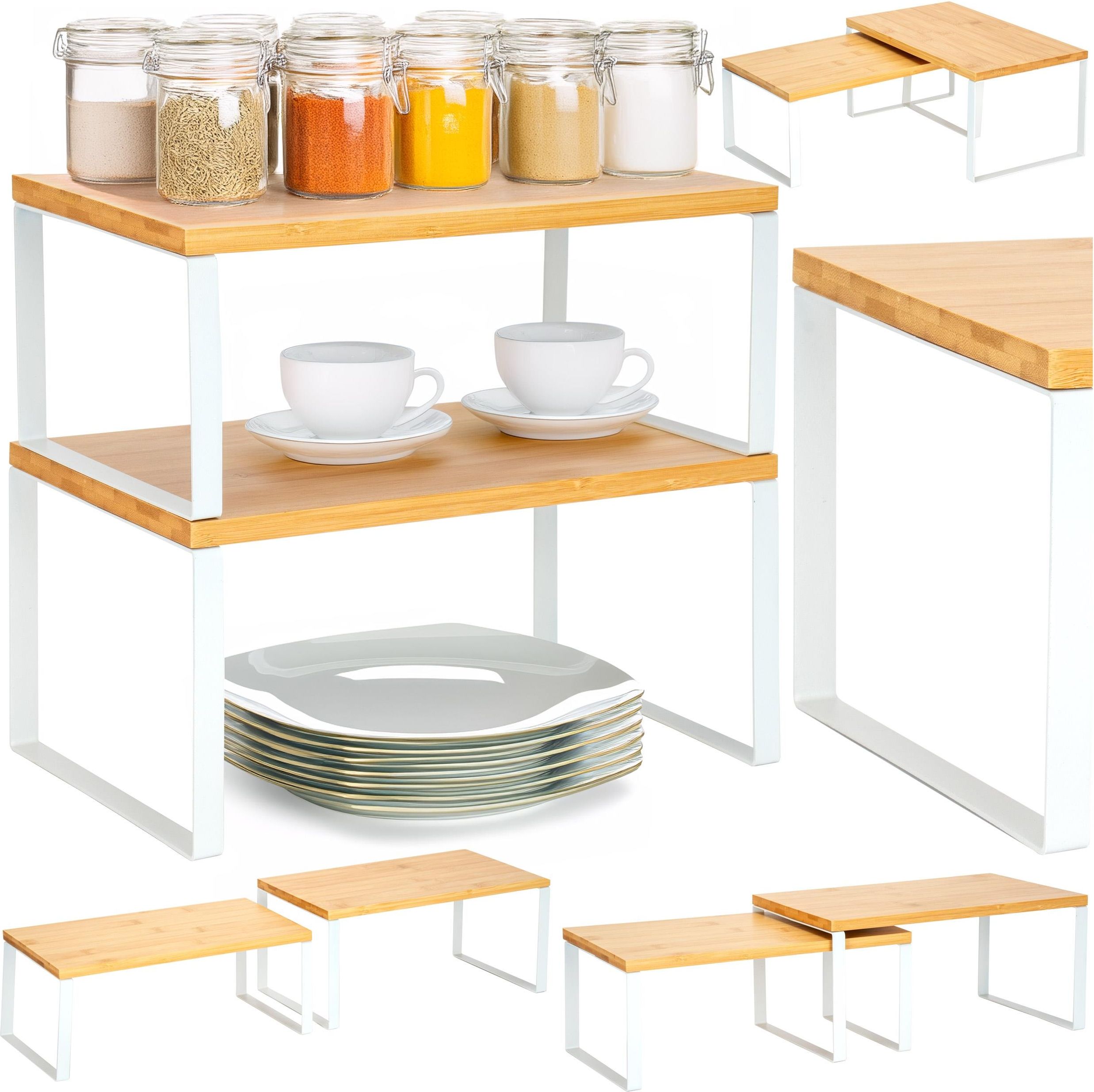 REGAŁ KUCHENNY NA PRZYPRAWY DREWNIANY PÓŁKA ORGANIZER STOJAK BIUROWY 2szt Półka kuchenna bambusowa organizer kuchenny 2 sztuki na blat Kolor: biały/naturalny bambus Materiał: drewno bambusowe i metal ⭐ W zestawie 2 półki ⭐Dowolna konfiguracja Zestaw dwóch półek Ginger – Niezastąpiony organizer w …