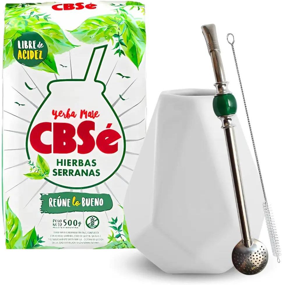 Zestaw Startowy Yerba Mate CBSe Hierbas Serranas + Akcesoria Odkryj orzeźwiającą harmonię yerba mate i aromatycznych ziół! Ten zestaw startowy to doskonały wybór dla osób ceniących naturalne smaki i delikatne pobudzenie. ⭐️CBSe Hierbas Serranas 500g – wyjątkowa yerba mate wzbogacona mieszanką górskich ziół, takich jak mięta i poleo. Świeży, łagodny smak idealny na każdą porę dnia. ⭐️Tykwa Matero Diament – Ceramiczne szkliwione naczynko w kształcie tykwy w kolorze białym 280ml. ⭐️Bombilla stalowa z zielonym kamieniem – trwała rurka filtrująca, pozwalająca cieszyć się napojem bez fusów. ✅ Delikatne pobudzenie i naturalna świeżość. ✅ Wygodne i trwałe akcesoria – doskonałe do codziennego użytku. ✅ Ziołowy aromat – idealny wybór dla miłośników lekkich i odświeżających naparów. Zamów teraz i poczuj górski powiew świeżości w swojej yerba mate!