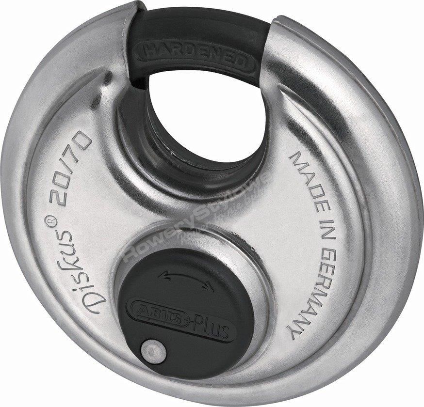 Kłódka ABUS Diskus 20/70 służy do zabezpieczenia przedmiotów o dużej wartości lub przy wysokim ryzyku kradzieży. Do zamykania ciężarówek, hal fabrycznych, drzwi piwnicznych itd. Stal nierdzewna na zewnątrz i od wewnątrz Dodatkowe zabezpieczenie przed przepiłowaniem. Jarzmo ze specjalnie hartowanej stali Zamek tarczowy Abus-Plus: najwyższa precyzja zabezpieczająca przed inteligentnymi próbami otwarcia, 30.000 kombinacji klucza Osłona otworu klucza - ochrona przed zabrudzeniem i zalaniem. Technologia spawu Diskus / najlepsza ochrona przed rozwierceniem Oryginalny Design Diskus chroniony w 360° Made in Germany 2 klucze w zestawie Kłódki z serii ABUS Diskus do wszechstronnych zastosowań. Klasyk firmy ABUS - made in Germany. Kłódka Diskus to przede wszystkim szczególny kształt kłódki z wyjątkowymi zaletami. Dzięki kształtowi tarczy nieskuteczna jest większość metod sforsowania kłódki. Konstrukcja kłódki zapewnia bardzo ciasny otwór w prześwicie jarzma, nie dając miejsca na atak ciężkimi narzędziami. Kłódka ABUS Diskus skonstruowana jest, w znacznej części, ze stali nierdzewnej, w wyniku czego doskonale sprawdza się tam, gdzie liczy się bezpieczeństwo i antykorozyjność. Ochrona z każdej strony Rodzina kłódek Diskus jest oferowana w rozmiarach od 50 do 80 mm. Oryginalny Diskus produkowany jest tylko przez firmę ABUS. Dodatkowo kłódki te są produkowane w wersji z zamkiem tarczowym ABUS-Plus i z tarczą chroniącą zamek.