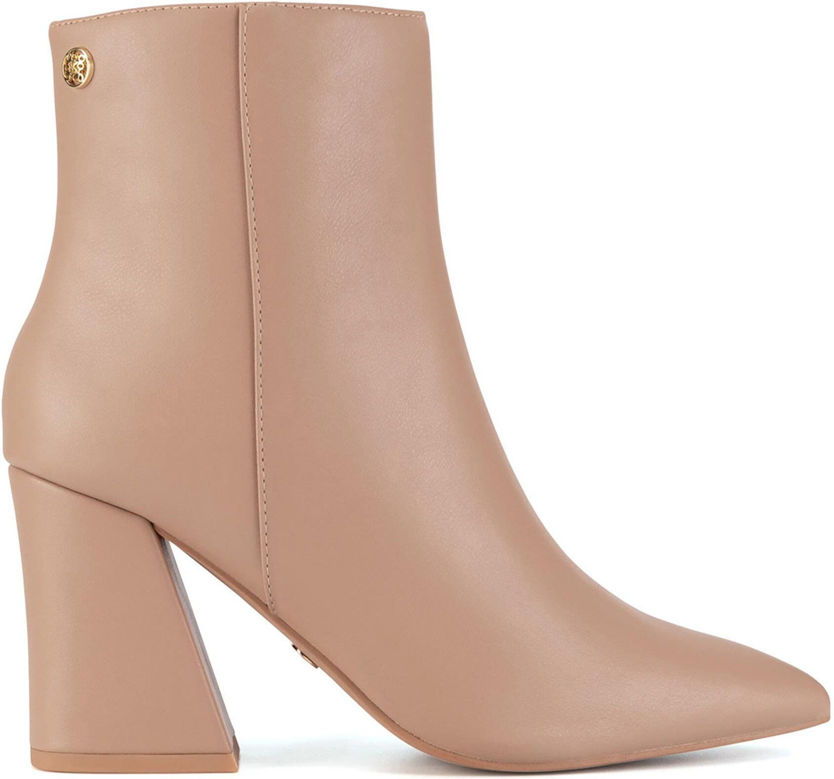Jeśli szukasz stylowych i wygodnych butów na co dzień, botki od marki Nine West będą idealnym wyborem! Te beżowe botki wykonane z wysokogatunkowego tworzywa syntetycznego zachwycają swoją elegancją i funkcjonalnością. Ich szpiczasty nosek oraz charakterystyczny słupek dodają im wyjątkowego charakteru, a zapięcie na suwak sprawia, że są niezwykle łatwe w zakładaniu. Konstrukcja za kostkę zapewnia odpowiednie wsparcie i stabilność stopy. Te casualowe botki to doskonałe uzupełnienie Twojej garderoby, które z pewnością przyciągnie uwagę każdego. Nine West to amerykańska marka modowa, której początki sięgają lat 70. Swoją nazwę zawdzięcza adresowi budynku przy jednej z ulic Nowego Jorku. Marka szybko zyskała sporą popularność, dzięki czemu posiada butiki niemal na wszystkich kontynentach. Nine West znane jest ze swoich odważnych, ale eleganckich projektów. W naszej ofercie znajdziesz szykowne buty i torebki dla kobiet, które lubią nowojorski styl glamour. Zachwycą Cię szczególnie skórzane botki, czółenka czy sandały na obcasie z gustownymi ozdobami. Odkryj całą ofertę Nine West w CCC!